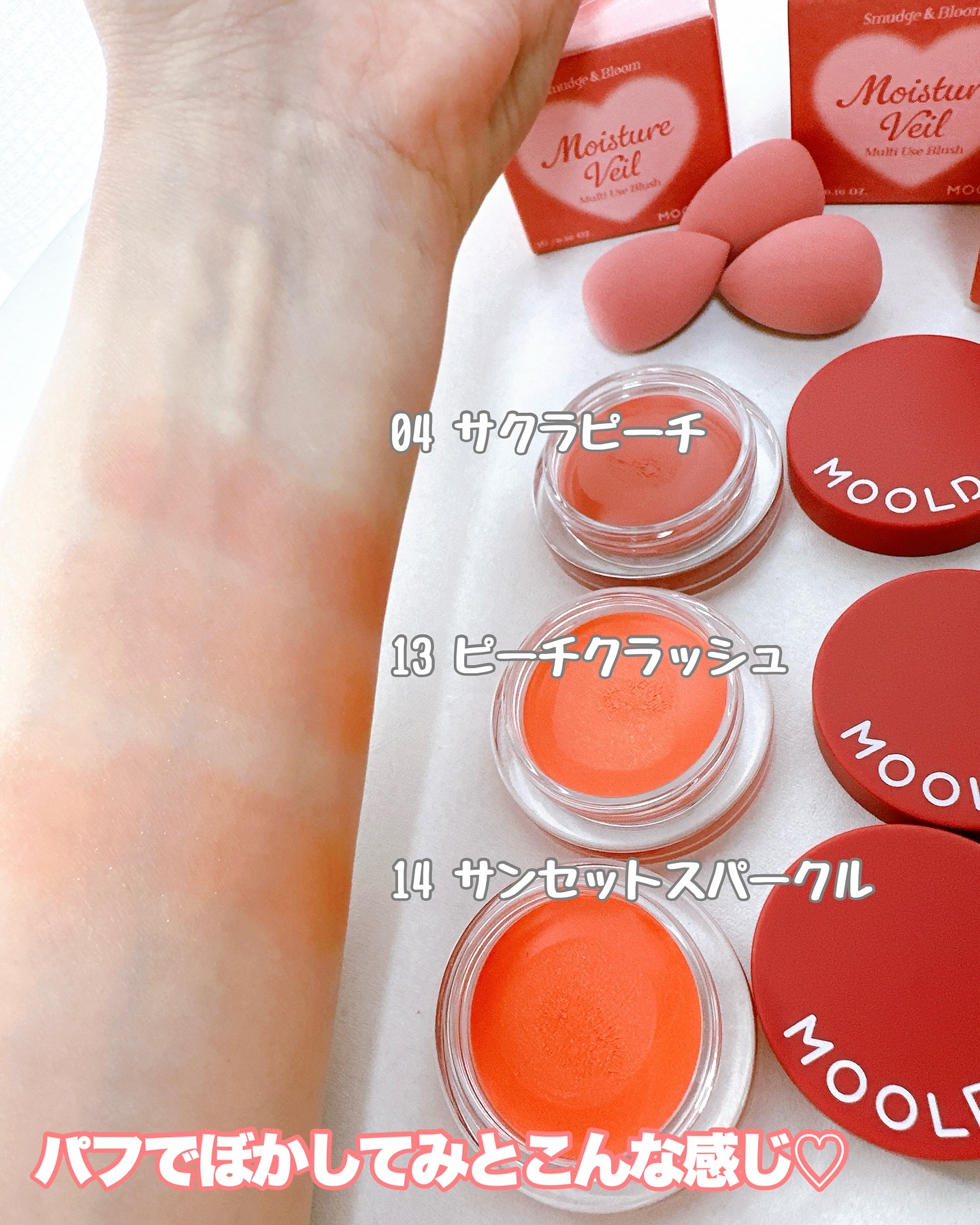 MOOLDAモイスチャーベールマルチユースブラッシャー3個@moolda_jp マシュマロのようなふわふわの質感のブラッシャー。チークや、アイシャドウ、リップ、ハイライト、シェーディングになど使える!カラバリも多めで15色あり。(チーク 全1...