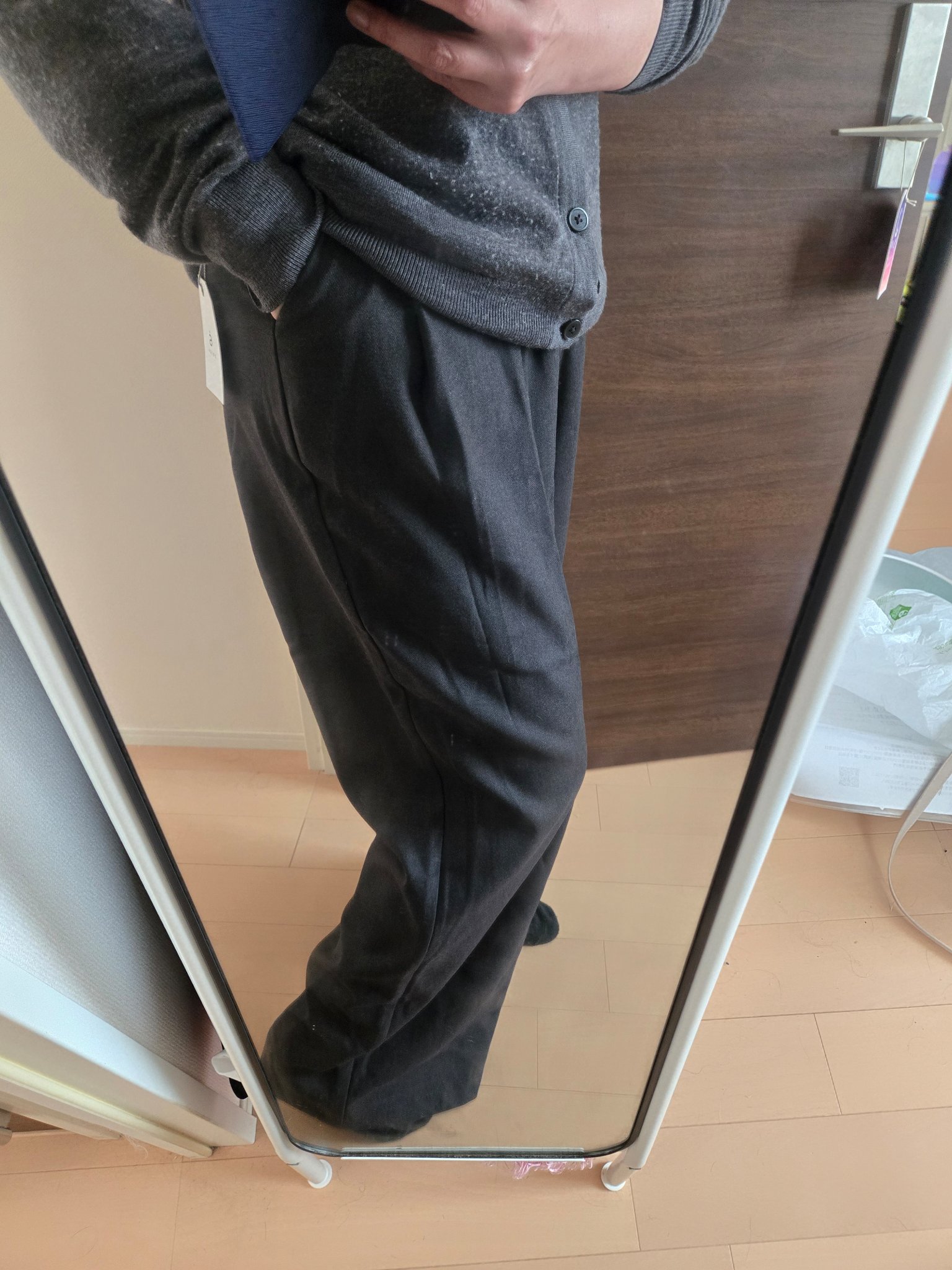 *Thankyou*ESICAウールタッチタックワイドパンツ ブラック上質なウールのような風合いで高級感があるのに軽やかで着心地は快適です。ゆったりとしたワイドシルエットでリラックス感と動きやすさもありました。ウエストのベルト部分のデザインが...