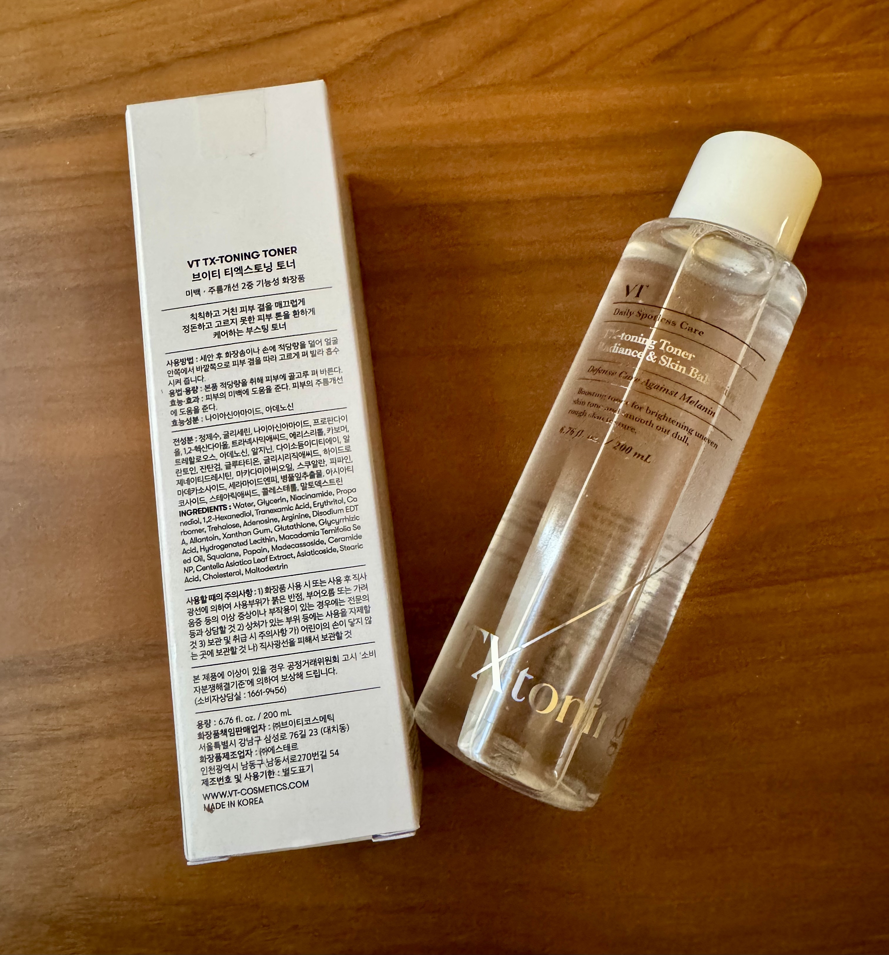 - <TXトーニングトナー> 水、グリセリン、ナイアシンアミド、プロパンジオール、1,2-ヘキサンジオール、トラネキサム酸、エリスリトール、カルボマー、トレハロース、アデノシン、アルギニン、EDTA二ナトリウム、アラントイン、キサンタンガム、グルタチオン、グリチルリチン酸、水添レシチン、マカダミアテルニフォリア種子油、スクワラン、パパイン、マデカソシド、セラミドNP、ツボクサ葉エキス、アジアチコサイド、ステアリン酸、コレステロール、マルトデキストリン