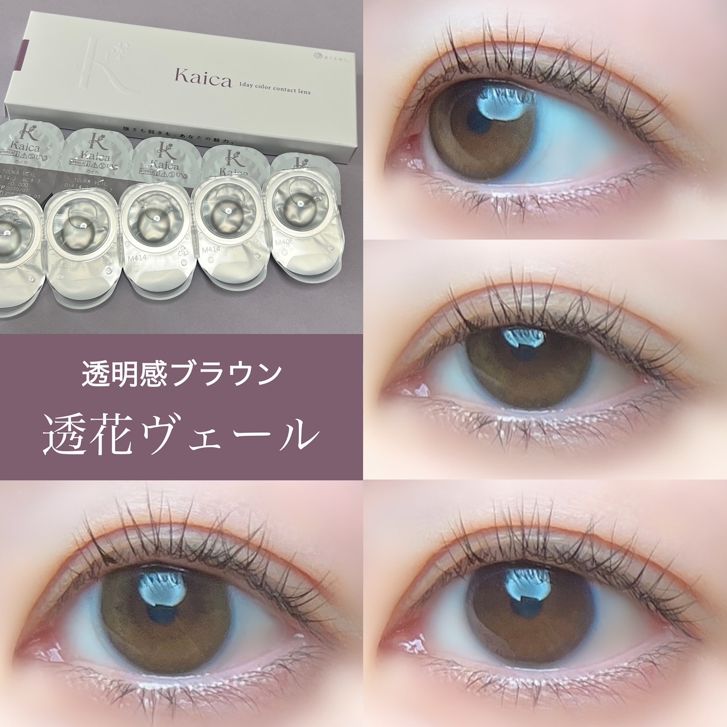 - 『Kaica』のレンズは全て「人口っぽさ」をできるだけなくし、間近で見てもカラコンをしていることがバレにくいデザイン設計。 まるでオーロラのように美しい彩りのヴェールを瞳にまとったかのような仕上がりになるのが特徴です。 裸眼の色に左右されることなく、黒目さんでも茶目さんでも、色が浮くことなくキレイに色が溶け込むように馴染むため、裸眼を活かしながら透明感を瞳に与えることができます。 2025年4月発売 <月絃ベージュ> 今っぽトレンドのトーンアップベージュ。愛らしさをプラスしてくれる、ちゅるん系レンズ <咲初ショコラ> 瞳をきらっと魅せる王道ダークブラウン。どんなシーンでも迷わず使える、実力派レンズ。 <淡花ヌード> 儚げでミュートな淡色ブラウン。とことん裸眼に馴染む、ナチュラルを追及したレンズ。 <透花ヴェール> こだわりの透明感を叶える幻想的なヘーゼルブラウン。どんな瞳も儚く魅せる、色素薄い系レンズ。 <優花ブラウン> 瞳のトーンアップを演出する柔らかいライトブラウン。自然に瞳を印象づける、サークルレンズ。 <優月ブラック> 瞳に透明感を与える優しげなブラック。自然に瞳を印象づける、サークルレンズ。 カラーコンタクトレンズの不適正使用による眼障害の危険性等などがあります。 ●コンタクトレンズは高度管理医療機器です。不十分な洗浄・消毒など不適切なケアや、長時間・交換期間を超えた装用により、アレルギー性結膜炎、角膜感染症、角膜潰瘍等の重篤な眼障害が発生する危険性があります ●ご使用前に取扱説明書を確認してください 使用上の留意事項 ●眼科医院等を受診してからお求めください ●眼に異常を感じたら直ちにレンズ使用を中止し、お近くの眼科等で診察を受けてください ●医師の指示にしたがってご使用ください ●コンタクトレンズを装用する場合、自覚症状がなくても、眼科医院等での定期検査を受けてください ●レンズに不具合がある場合は使用しないでください