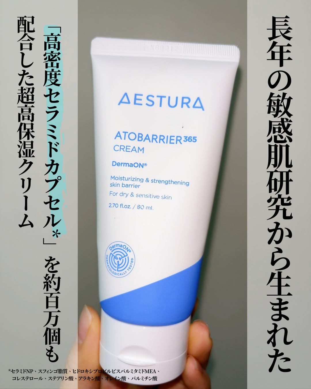 20秒に1個売れる*1韓国で大人気クリームAESTURAアトバリア365クリー厶敏感肌研究から生まれた高密度セラミドカプセル*2でパワーアップ*3した保湿力が魅力のクリーム。乾燥してピリつくなぁ…という方におすすめです♬テクスチャはこっ...