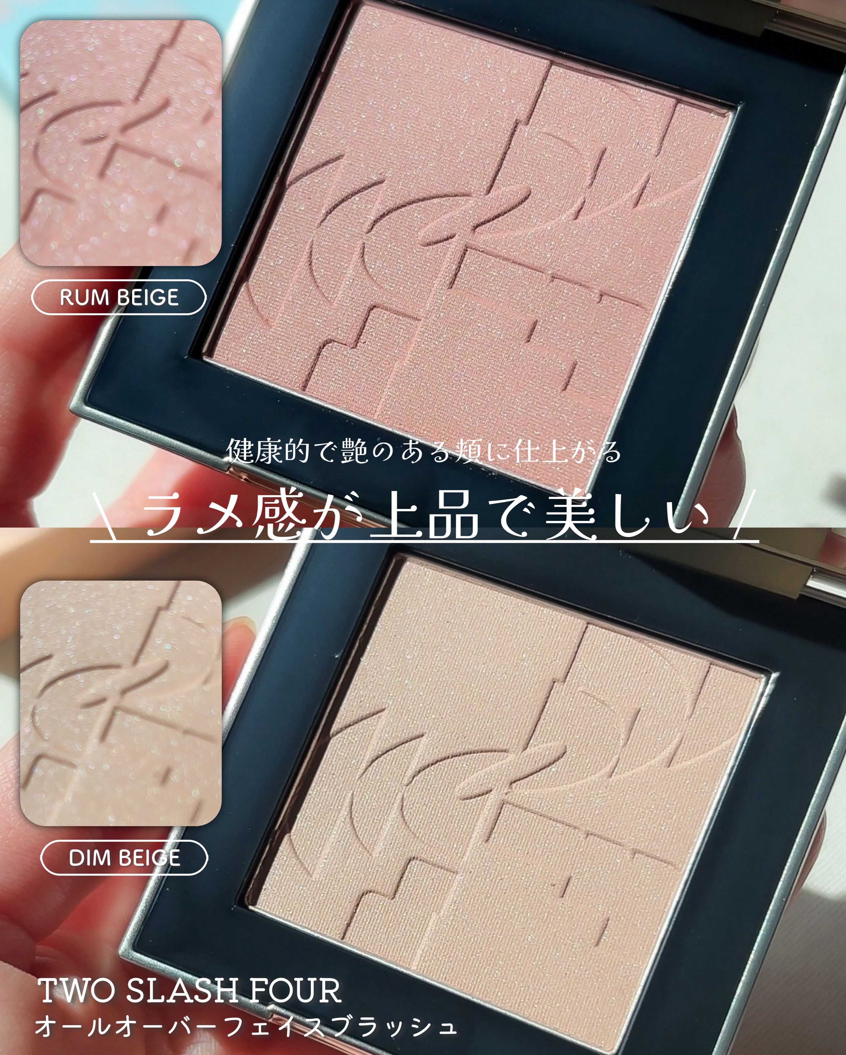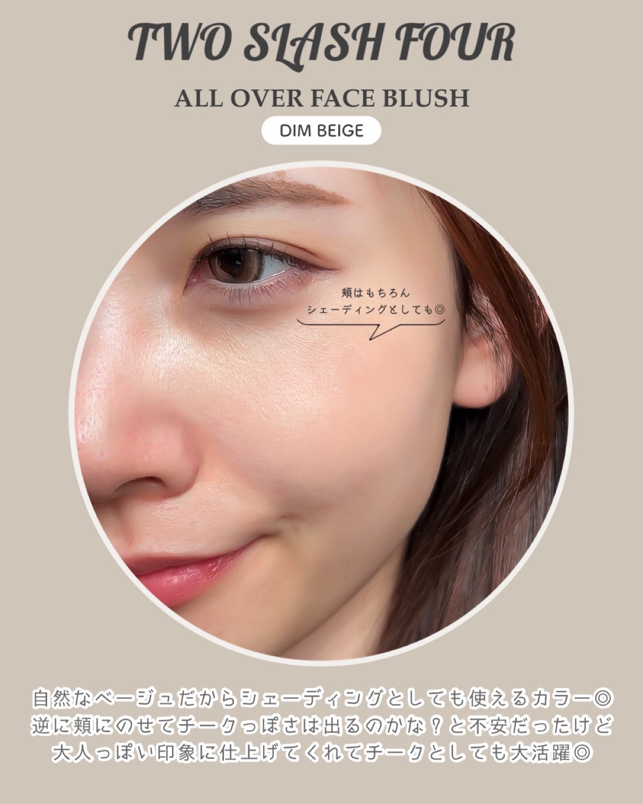 𓍯オールオーバーフェイスブラッシュ⌇TWOSLASHFOURTWOSLASHFOURは韓国のビューティークリエイター"イサベ"がプロデュースしているコスメブランド𓂃🇰🇷✨☑︎DimBeige┊ゴールド&シルバーパール入りで彩度の低いヌーディー...
