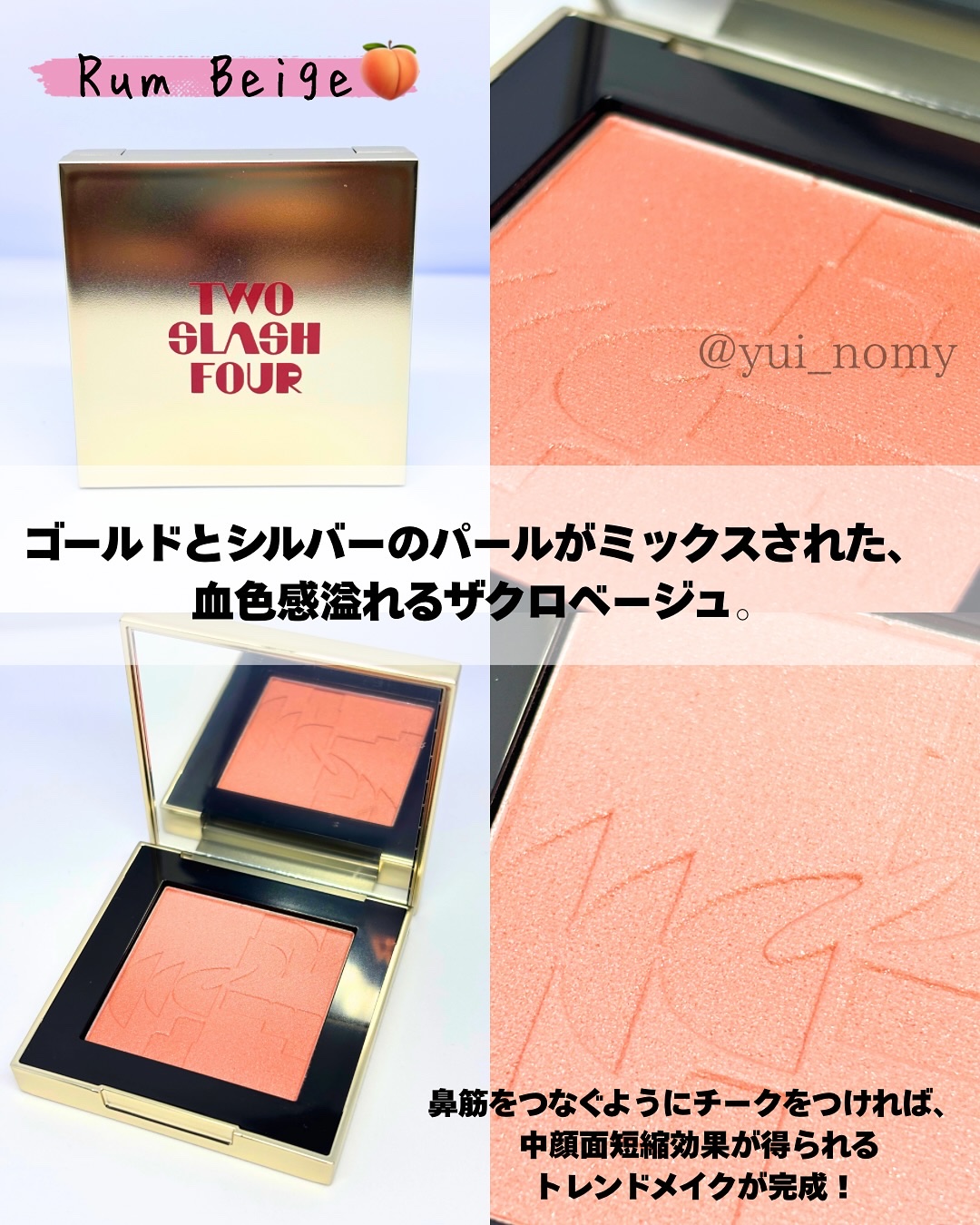 大注目コスメブランドTWOSLASHFOURのブラッシュ全色レビュー✨@twoslashfour_jp@risabae_artTWOSLASHFOURオールオーバーフェイスブラッシュ●RUMBEIGEゴールドシルバーのパールがミックスされた血...