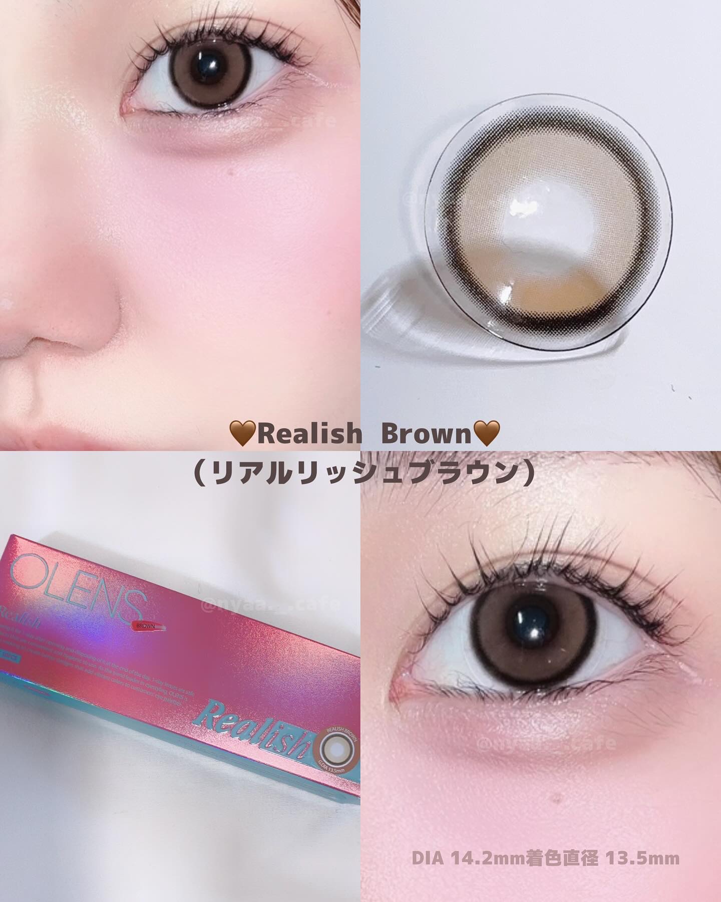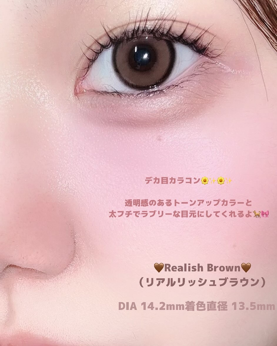 \OLENS/新作デカ目カラコン比較新登場◼︎Realish【Gray•Brown】DIA:14.5mmGDIA:13.5mm水分含有量:48%透明感のあるトーンアップカラーと太フチでラブリーな目元演出◼︎RealRing【Gray•Brow...