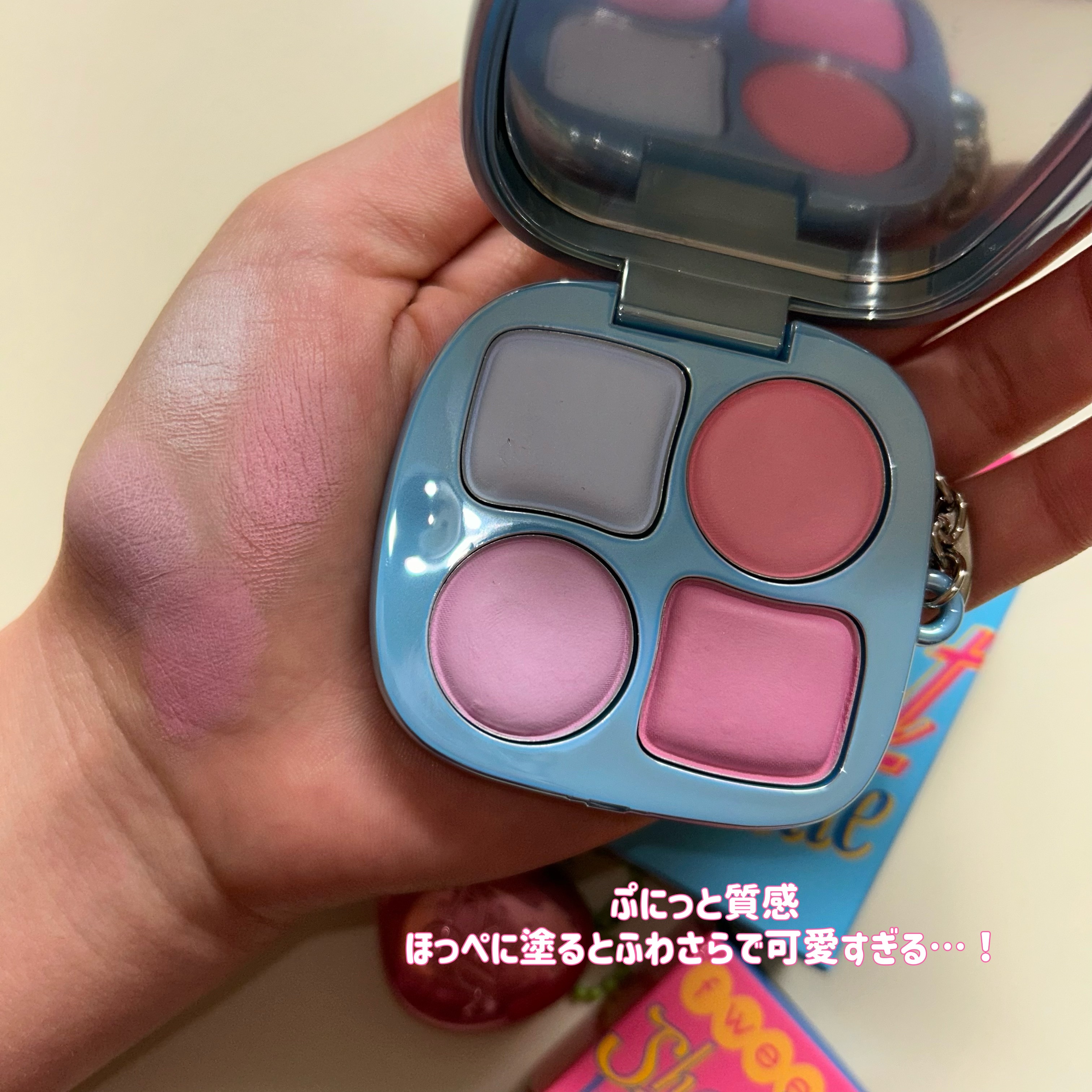 fwee新作ポケットシリーズが登場🧸🩵fweeらしさ全開のポップなデザインとカラー構成のポケットシリーズが登場💗✧fwee-ポケットアイパレットEP01キャンディーフロス-ポケットチークパレットCP01ピンク&ソーダ-シャドウキーリング(非売...