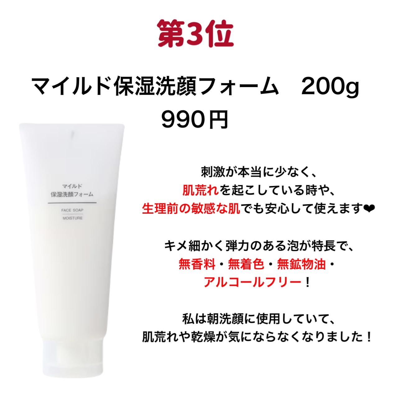 無印良品 マイルド保湿洗顔フォーム | 290円 |