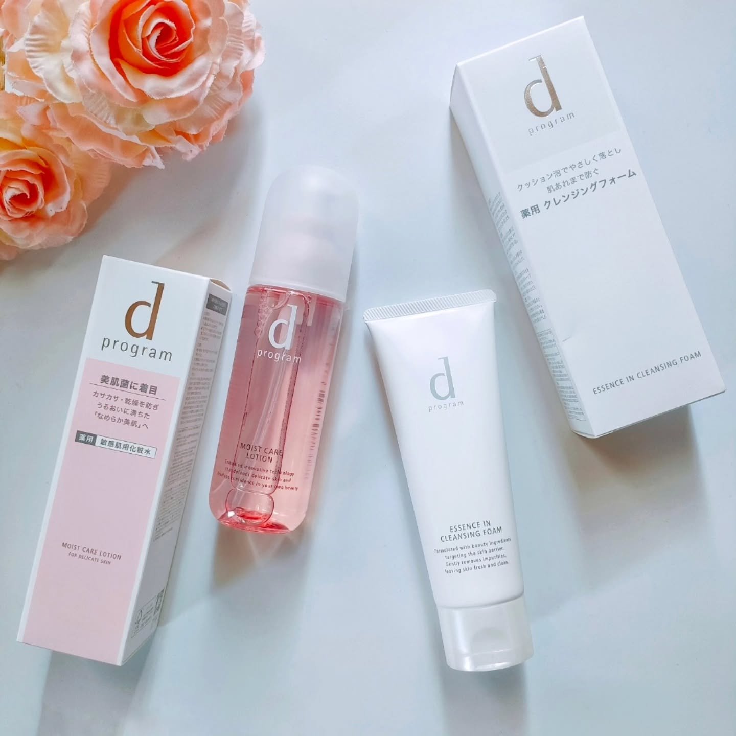 肌悩みに合わせて使えるスキンケアを使用しました🎵 かさつき・乾燥を防ぎしっとり美肌に導く化粧水と肌荒れの原因まで落とす薬用美容洗顔料です。 モイストケアローションMBはサラサラのテクスチャーです。伸びも良く、肌馴染みが良いです。ポンプ式のボトル🧴は衛生的に使えるのと、適量が出せるので好きです。 エッセンスインクレンジングフォームは少量で濃密な泡が簡単に出来ます。弾力のある泡で摩擦なく洗えます。洗い上りはしっとりで、つっぱりなどは感じませんでした。