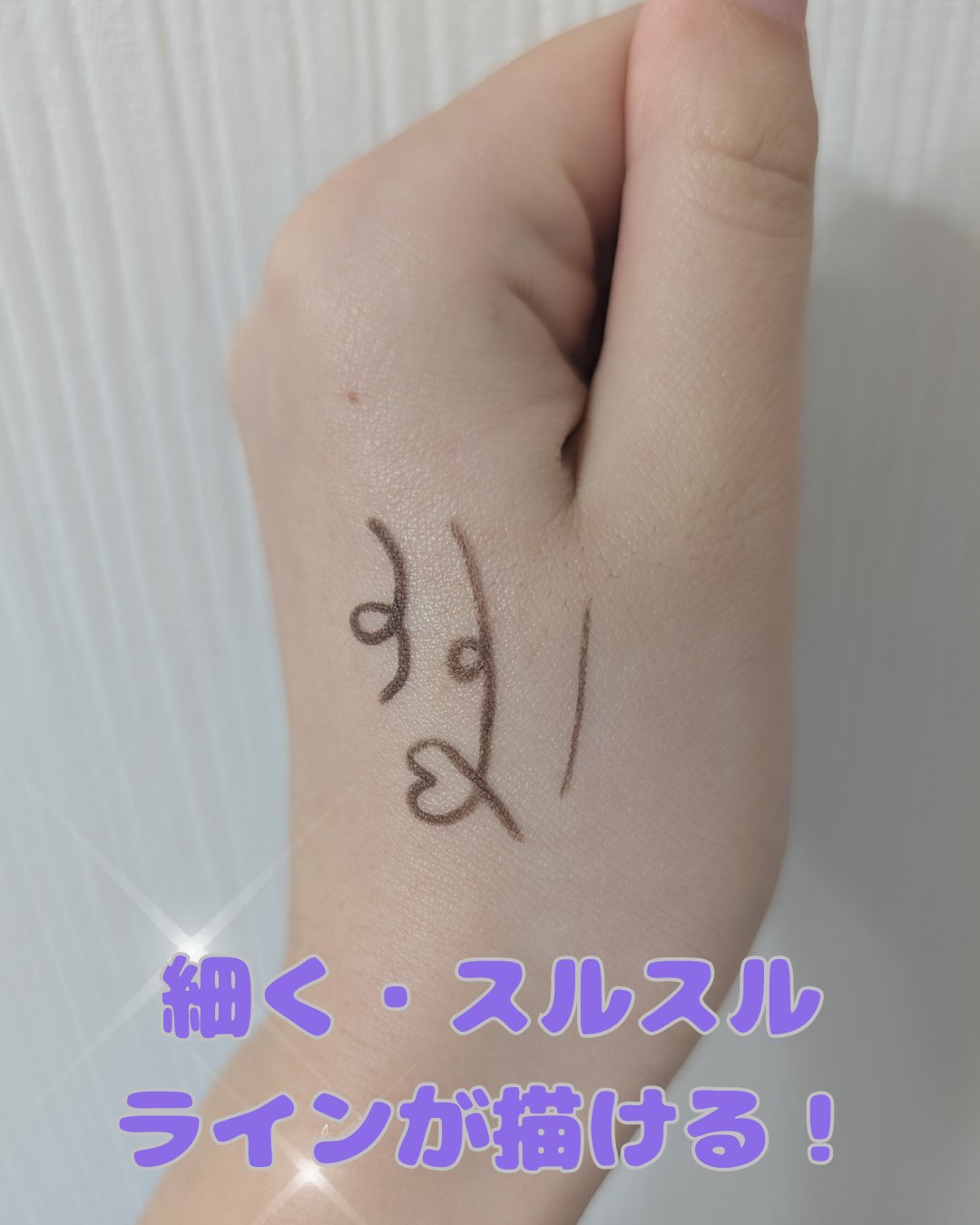 とろける描き心地。 しっかり濃く、しっかり発色。にじみにくい、水に強く、こすれにも強い。 発色が良く、長時間色持ちがキープ! すぐに乾いて落ちにくいです。 アイライナーがすぐ落ちてしまうという方にオススメです。またスルスル描けるのでストレスフリーでアイメイクができます。