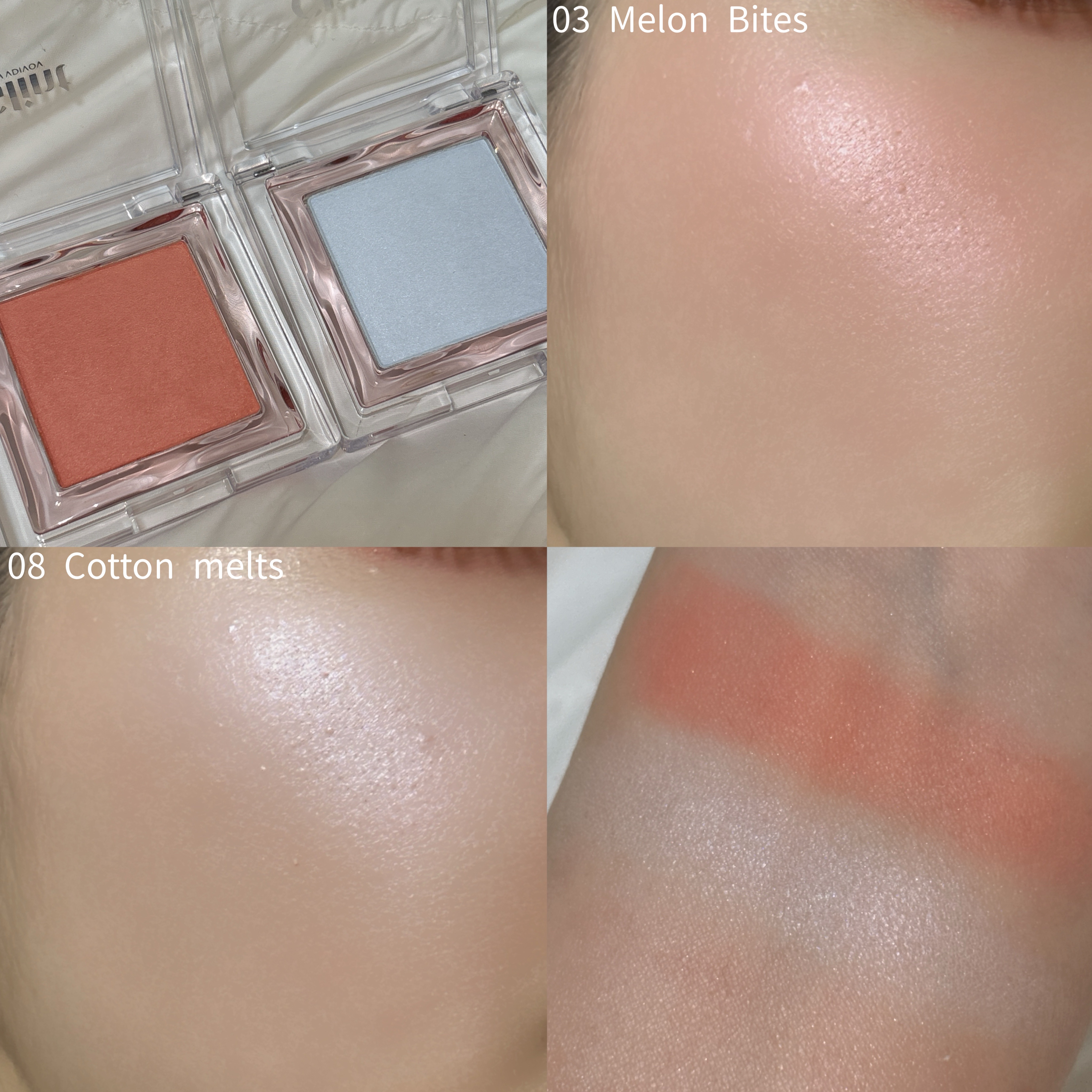 Glintベイクドブラッシュ&リキッドハイライター✨ベイクドブラッシュは混ぜて使う事ができる👏#03MelonBiteと#08CottonMeltsをまぜるとほわっと桜色になった🌸リキッドハイライターを上からとんとんするとじゅわっと艶もでてす...