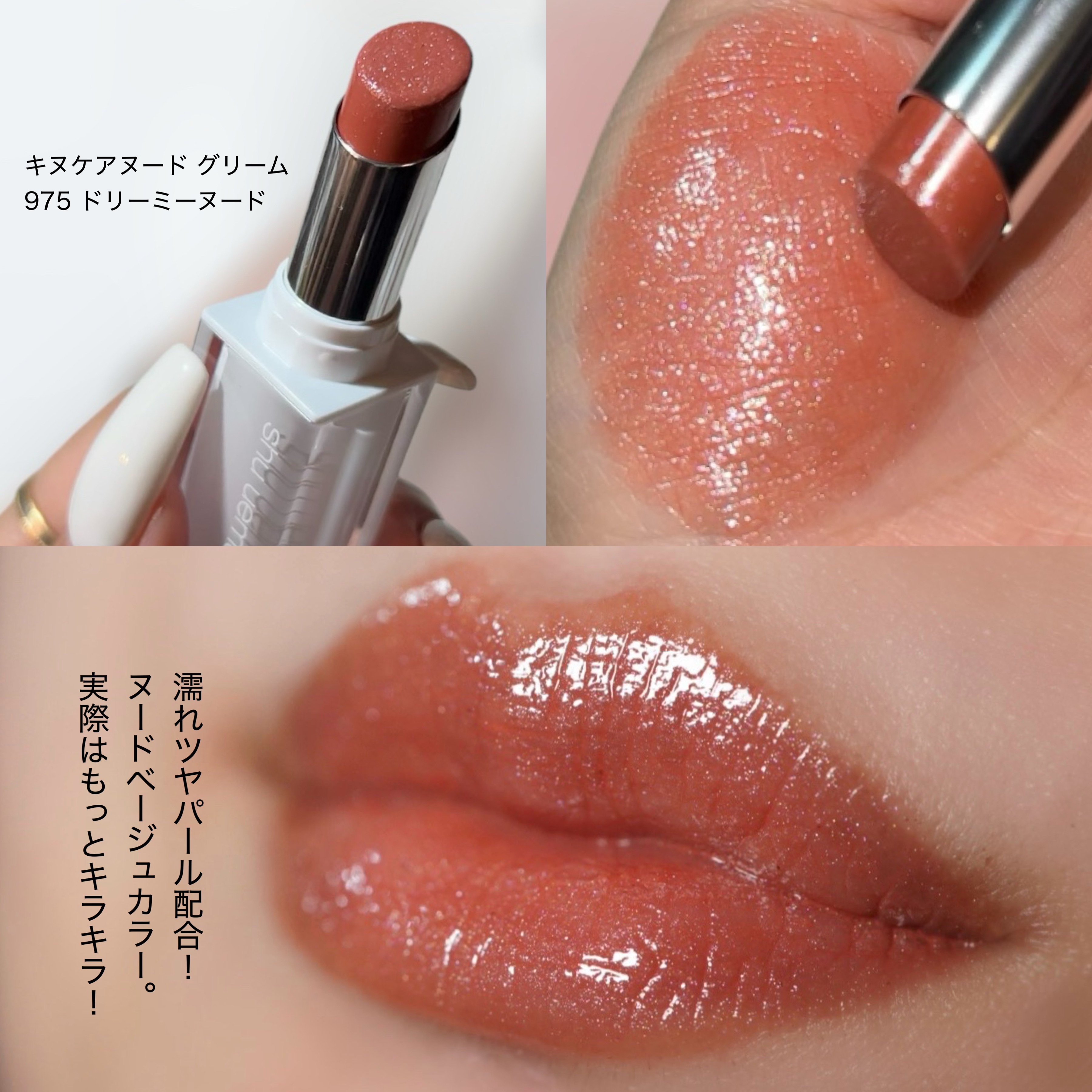 \4月11日発売.ᐟ.ᐟ/"濡れツヤパール配合"🫧LIPSでも高評価のバズリップ「キヌケアシリーズ」から新製品が登場𖤐´-▶︎shuuemuraキヌケアヌードグリームBG975Gドリーミーヌードくちびるから創る透明感演出。レフ板リップで顔色...