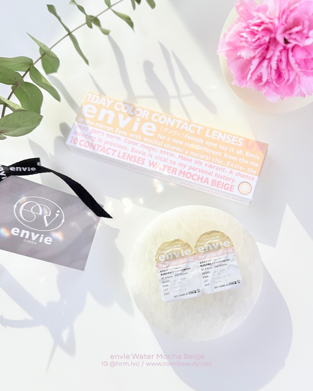 envienuanceseriesWATERMOCHABEIGEベージュニュアンスの水光感がたまらない「ウォーターモカベージュ」を装着してみました!DIA14.0mm/着色直径12.8mmで、ナチュラルだけどしっかり印象的な瞳に。水辺を映した...
