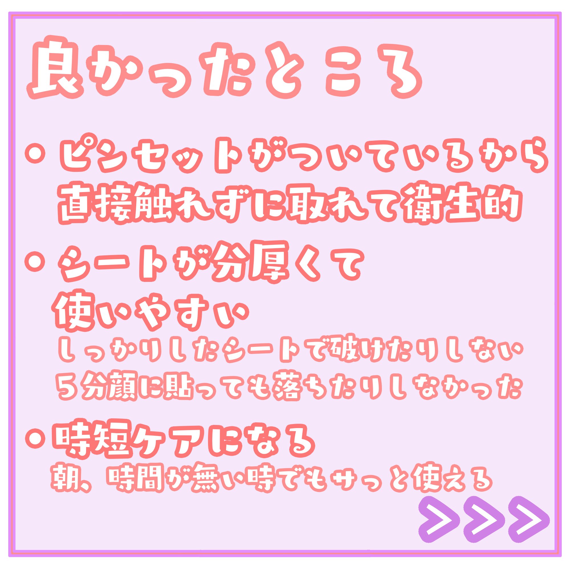 私正直普段シートのパックしないんですけど やはり未知なる体験とは怖いものでドキドキしてたんですけど 商品を開けた瞬間しゃぶしゃぶ用の薄い餅入ってる? パックって顔面に貼るの難しいと聞いてたんですけどこれは貼りやすかったです 8分で8時間熟睡した肌はすごくないですか? 私は夜更かし&PCの光を浴びまくったボロッボロの時に 鼻とか角栓でザラザラだったのがつるつる! たった8分で今までの愚行を許してくれるなんて!