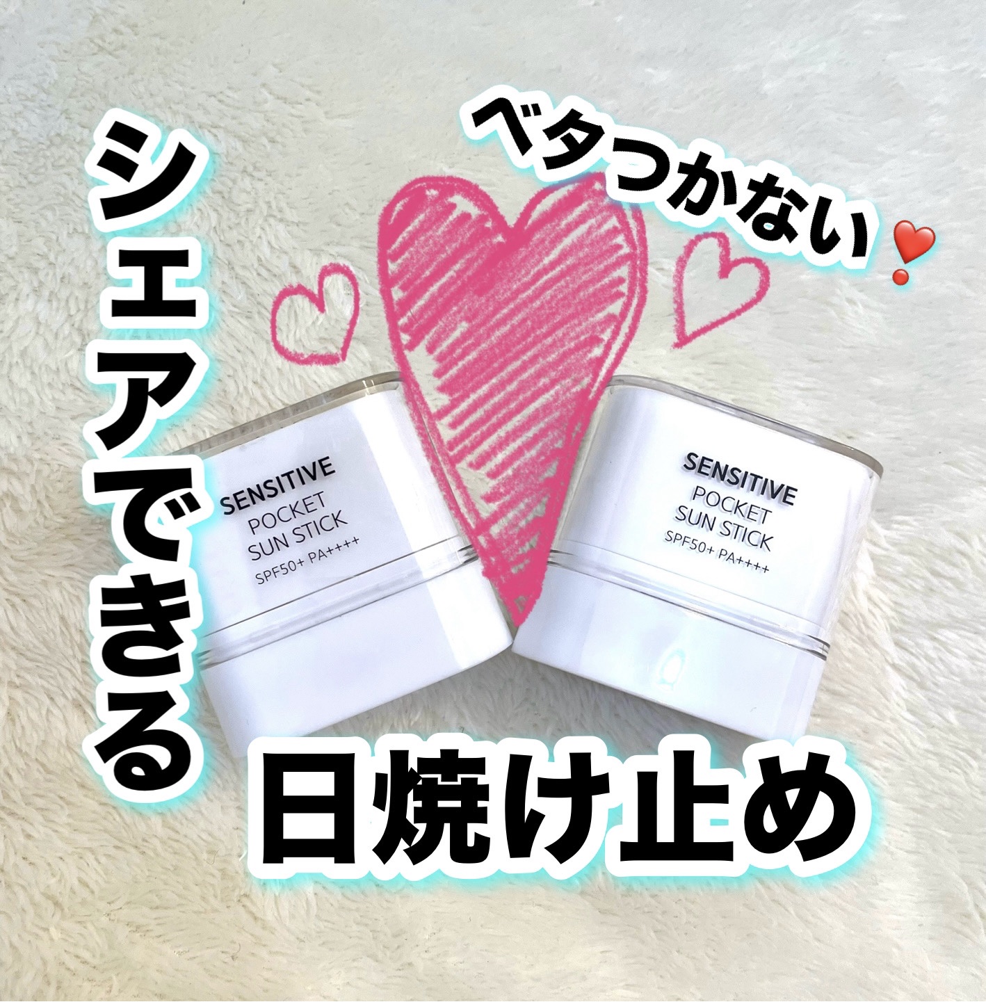 ♡SAM'Uセンシティブポケットサンスティック♡これ面白い!1つが2つになっちゃう!パッケージごと割れて、ワイヤレスイヤホンサイズの日焼け止めスティックが2つ出てきます。透明だからスウォッチしても見た目に分からないのですが、ベタつかずに使いや...