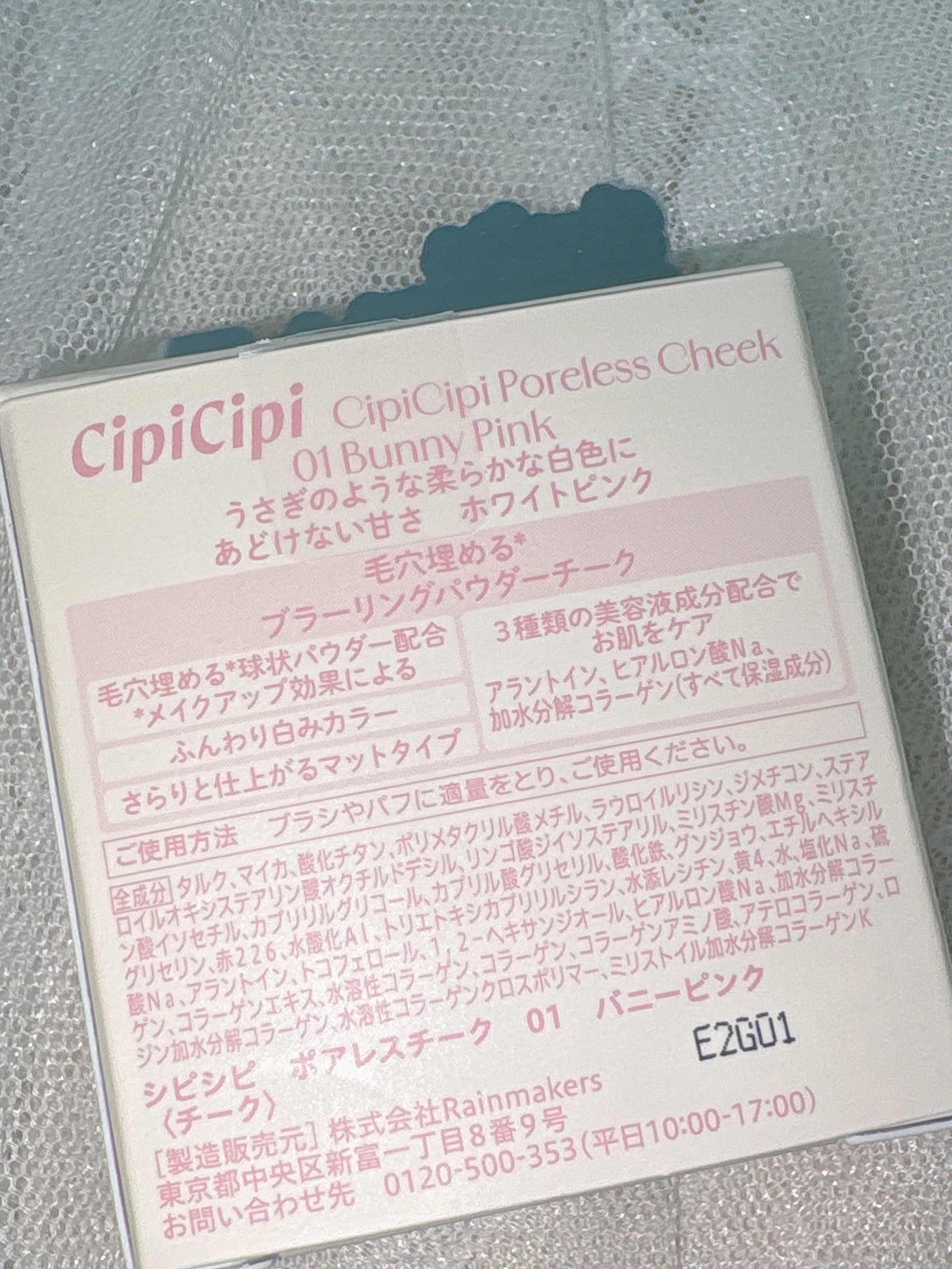 - <01 バニーピンク> タルク、マイカ、酸化チタン、ポリメタクリル酸メチル、ラウロイルリシン、ジメチコン、ステアロイルオキシステアリン酸オクチルドデシル、リンゴ酸ジイソステアリル、ミリスチン酸Mg、ミリスチン酸イソセチル、カプリリルグリコール、カプリル酸グリセリル、酸化鉄、グンジョウ、エチルヘキシルグリセリン、赤226、水酸化Al、トリエトキシカプリリルシラン、水添レシチン、黄4、水、塩化Na、硫酸Na、アラントイン、トコフェロール、1,2−ヘキサンジオール、ヒアルロン酸Na、加水分解コラーゲン、コラーゲンエキス、水溶性コラーゲン、コラーゲン、コラーゲンアミノ酸、アテロコラーゲン、ロジン加水分解コラーゲン、水溶性コラーゲンクロスポリマー、ミリストイル加水分解コラーゲンK <02 スワンラベンダー> タルク、マイカ、酸化チタン、ポリメタクリル酸メチル、ラウロイルリシン、グンジョウ、ジメチコン、ステアロイルオキシステアリン酸オクチルドデシル、リンゴ酸ジイソステアリル、ミリスチン酸Mg、ミリスチン酸イソセチル、カプリリルグリコール、赤226、カプリル酸グリセリル、エチルヘキシルグリセリン、水酸化Al、トリエトキシカプリリルシラン、水添レシチン、酸化鉄、黄4、水、塩化Na、硫酸Na、アラントイン、トコフェロール、1,2−ヘキサンジオール、ヒアルロン酸Na、加水分解コラーゲン、コラーゲンエキス、水溶性コラーゲン、コラーゲン、コラーゲンアミノ酸、アテロコラーゲン、ロジン加水分解コラーゲン、水溶性コラーゲンクロスポリマー、ミリストイル加水分解コラーゲンK <03 デイリーピーチ> タルク、マイカ、酸化チタン、ポリメタクリル酸メチル、ラウロイルリシン、ジメチコン、ステアロイルオキシステアリン酸オクチルドデシル、リンゴ酸ジイソステアリル、ミリスチン酸Mg、黄4、ミリスチン酸イソセチル、カプリリルグリコール、酸化鉄、カプリル酸グリセリル、エチルヘキシルグリセリン、赤226、水酸化Al、トリエトキシカプリリルシラン、水添レシチン、グンジョウ、水、塩化Na、硫酸Na、アラントイン、トコフェロール、1,2−ヘキサンジオール、ヒアルロン酸Na、加水分解コラーゲン、コラーゲンエキス、水溶性コラーゲン、コラーゲン、コラーゲンアミノ酸、アテロコラーゲン、ロジン加水分解コラーゲン、水溶性コラーゲンクロスポリマー、ミリストイル加水分解コラーゲンK