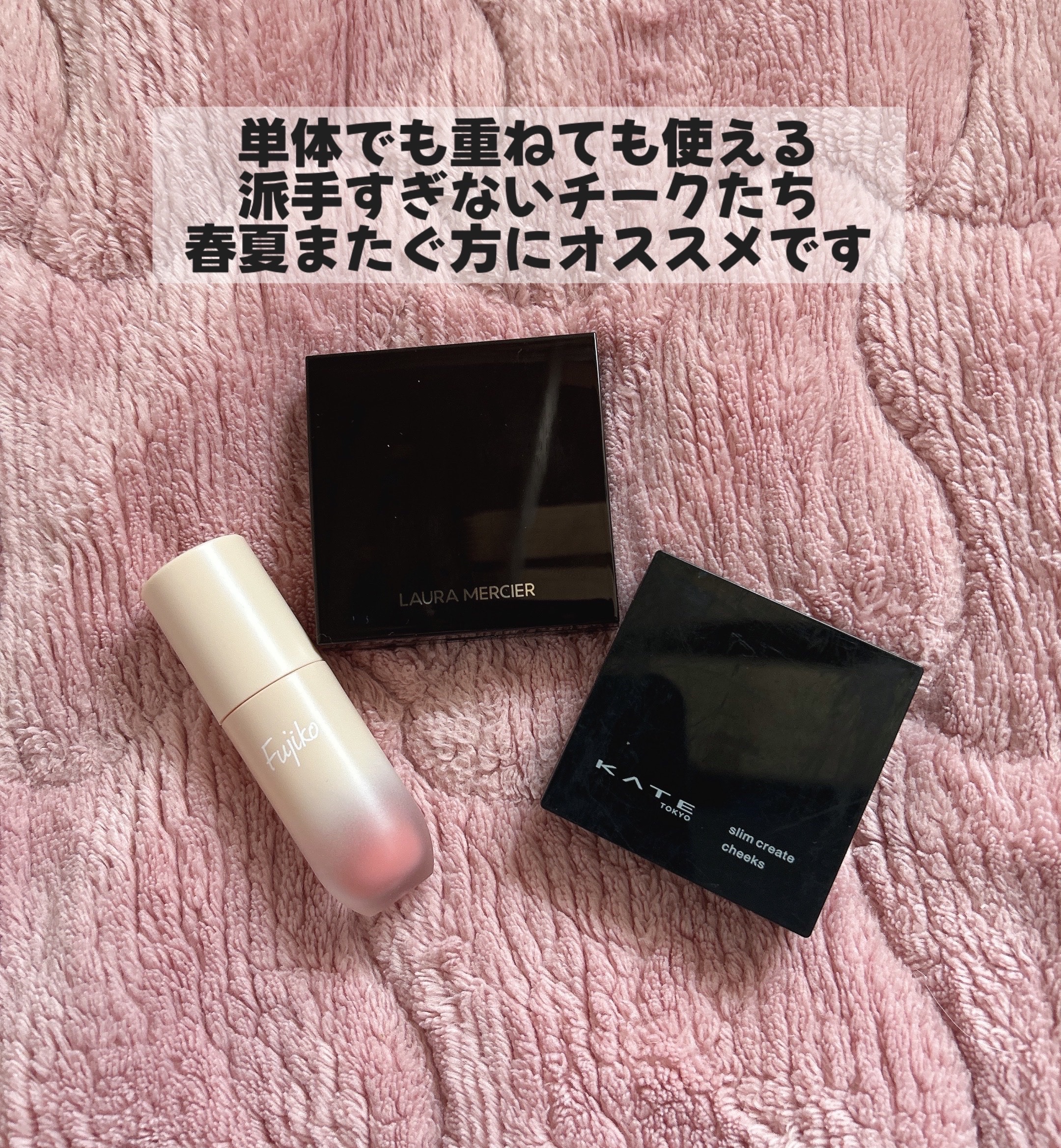 愛用チークたちですローラメルシエは@コスメのプレゼントでもらってから愛用してます🎁艶がキレイなのでここぞという時にケイトはマットで色づきもふわっとしてます普段使いに便利薄づきだからやりすぎた感ないフジコはジュワッと内側から発色する感じ元からこ...