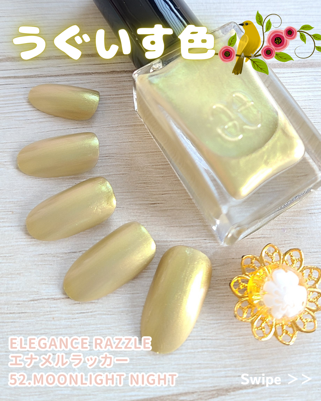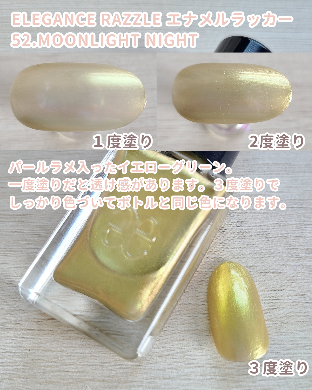 桜のようなピンクにグリーンパールの光沢 まさに桜貝のような美しさ やさしい色合いなのに確かなアクセントになる 指先にまとう春 春のまどろみと呼んでいましたw 夢見心地な色