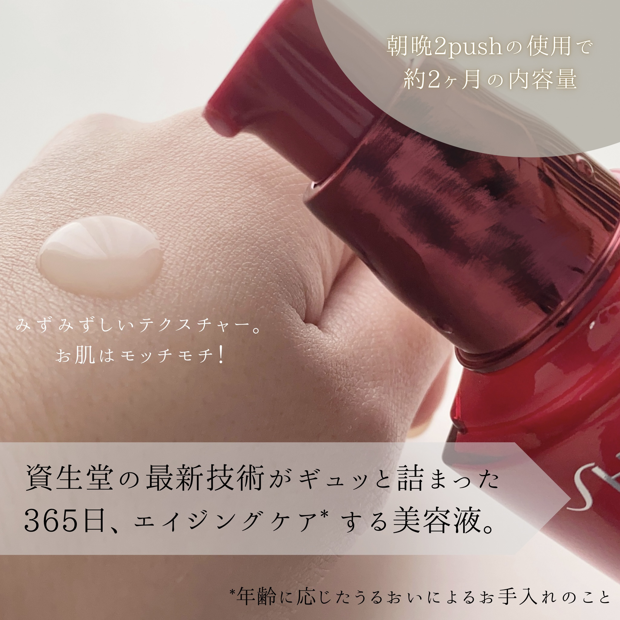 - 先進の美肌知見から。 365日、エイジングケア*¹する美容液。 今も未来も、本来持つ美しい肌へ。 日本独自のバイオ技術で椿の種子がもつ生命力からうるおいを。 発酵カメリアエキス+*²と厳選された美容成分を角層細胞へすみずみまで届けます。 朝、夜、毎日のお手入れで、ハリ、なめらかさ、透明感*³ あふれる輝きとうるおいに満ちた肌へ。 *¹ 年齢に応じたうるおいによるお手入れのこと *² ツバキ種子エキス、アスペルギルス培養物、グリセリン:保湿 *³ うるおいによる肌印象の事