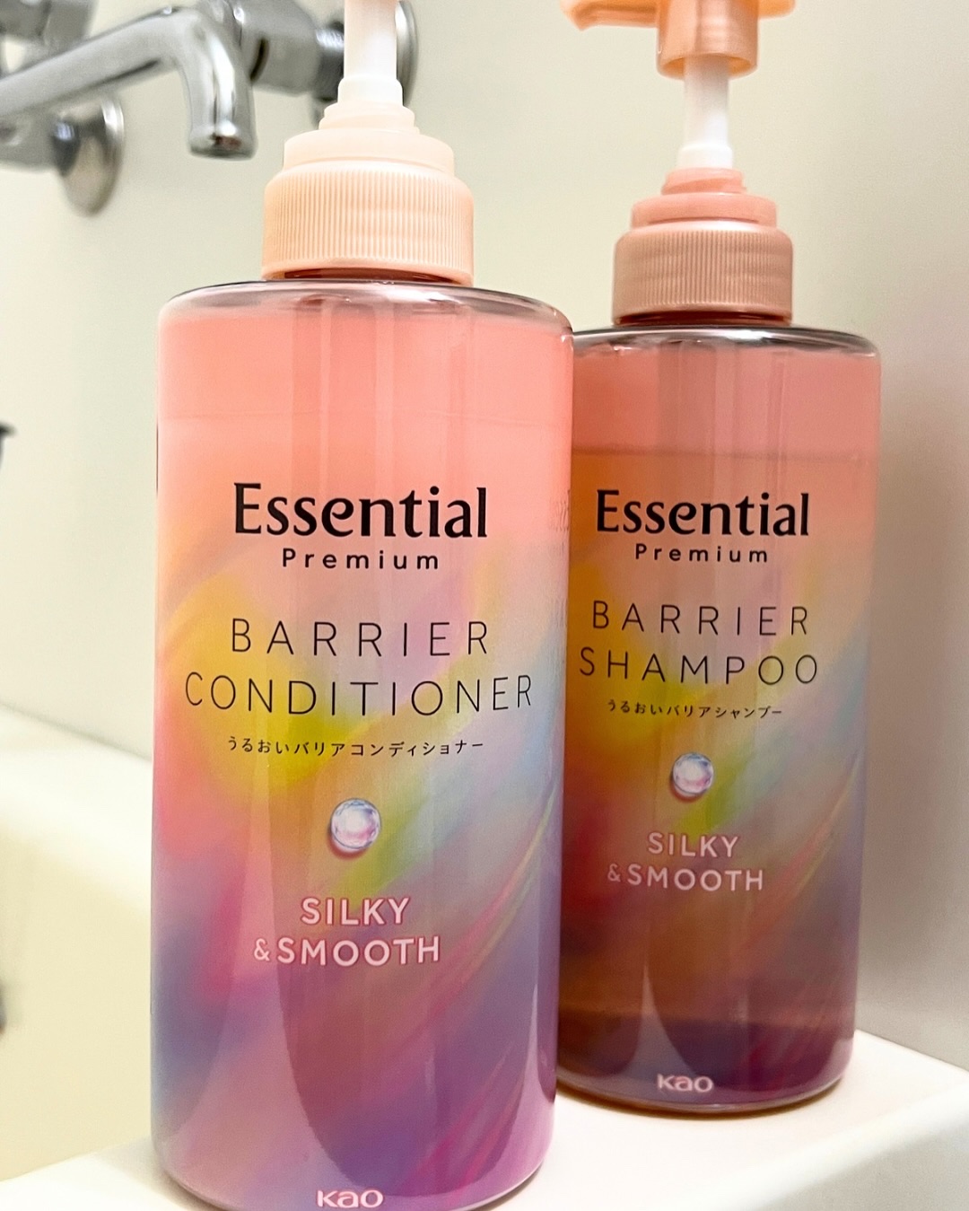 花王「エッセンシャル プレミアム バリアシルキー&スムースポンプセット+うるツヤチャージヘアパック」を使ってみました😊✼••┈┈••✼••┈┈••✼••┈┈••✼••┈┈••✼シャンプーはアミノ酸系洗浄成分使用、とろふわスフレ泡でやさしく洗え...