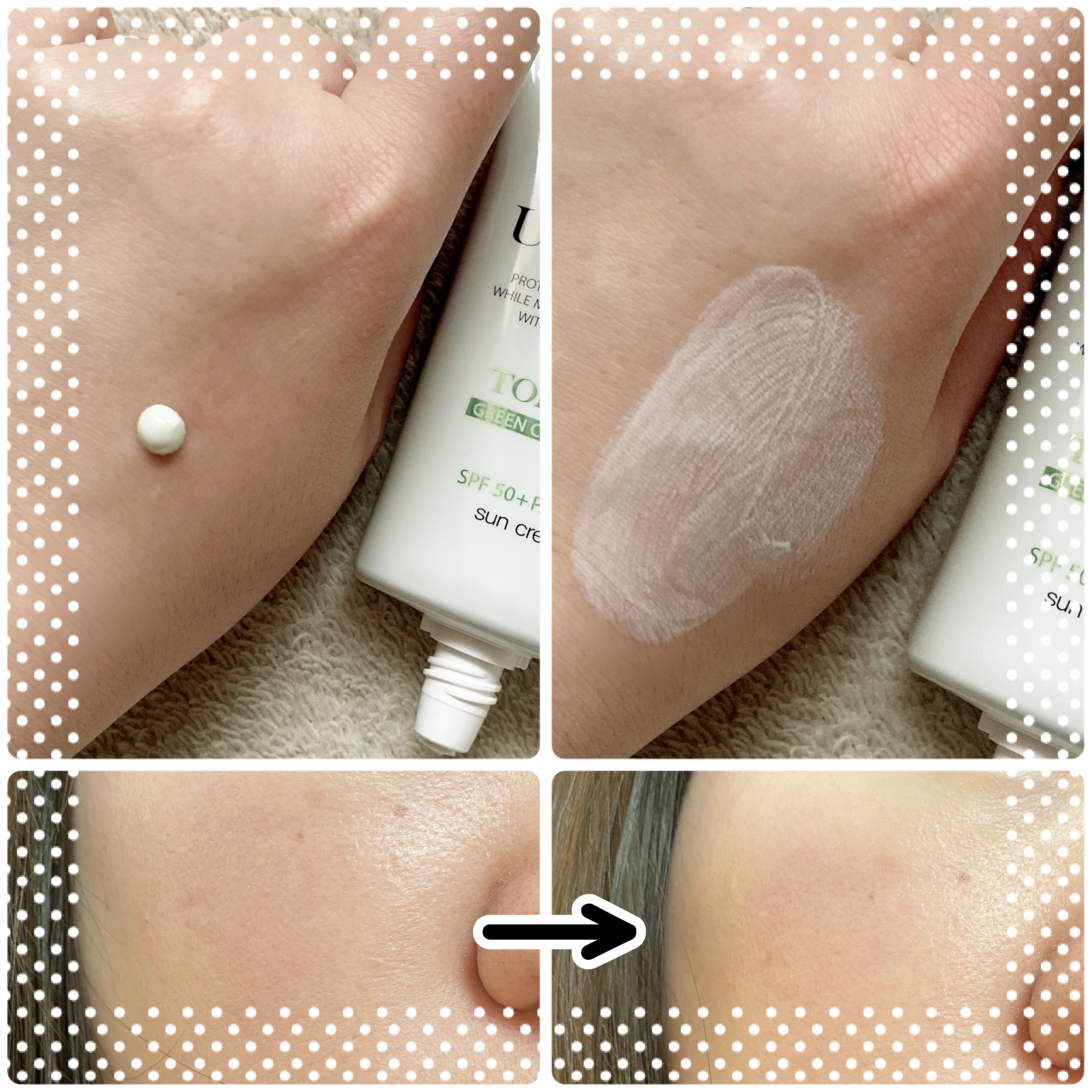 - 日焼けによるしみ、そばかすを防ぐ。 水のようななめらかな使用感。 ムラのない均一トーンに補正する日焼け止めクリーム。 SPF50+ PA++++ 日焼け止めの特有なべたべた感が苦手な方、日焼け止め、下地を一つで解決したい方におすすめです。 赤みの気になる部分へ塗布していただくと、ムラのない均一トーンに。※ 軽いテクスチャーでしっとりとした塗り心地。 ※メイクアップ効果による