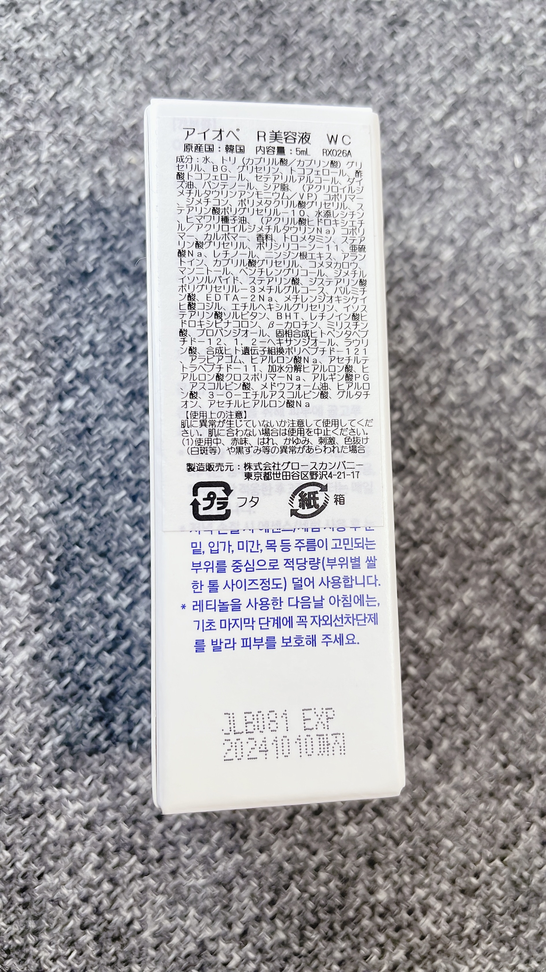 ■IOPEレチノールエキスパート0.1%アモパシで買い物したときに付いてきたサンプル。緩めの水分クリームみたいなテクスチャでスルスル伸ばせます。お花みたいな上品な香りがほんのり……と思いきや、塗り広げると独特の原料臭が際立つ。玉ねぎ切った後の...