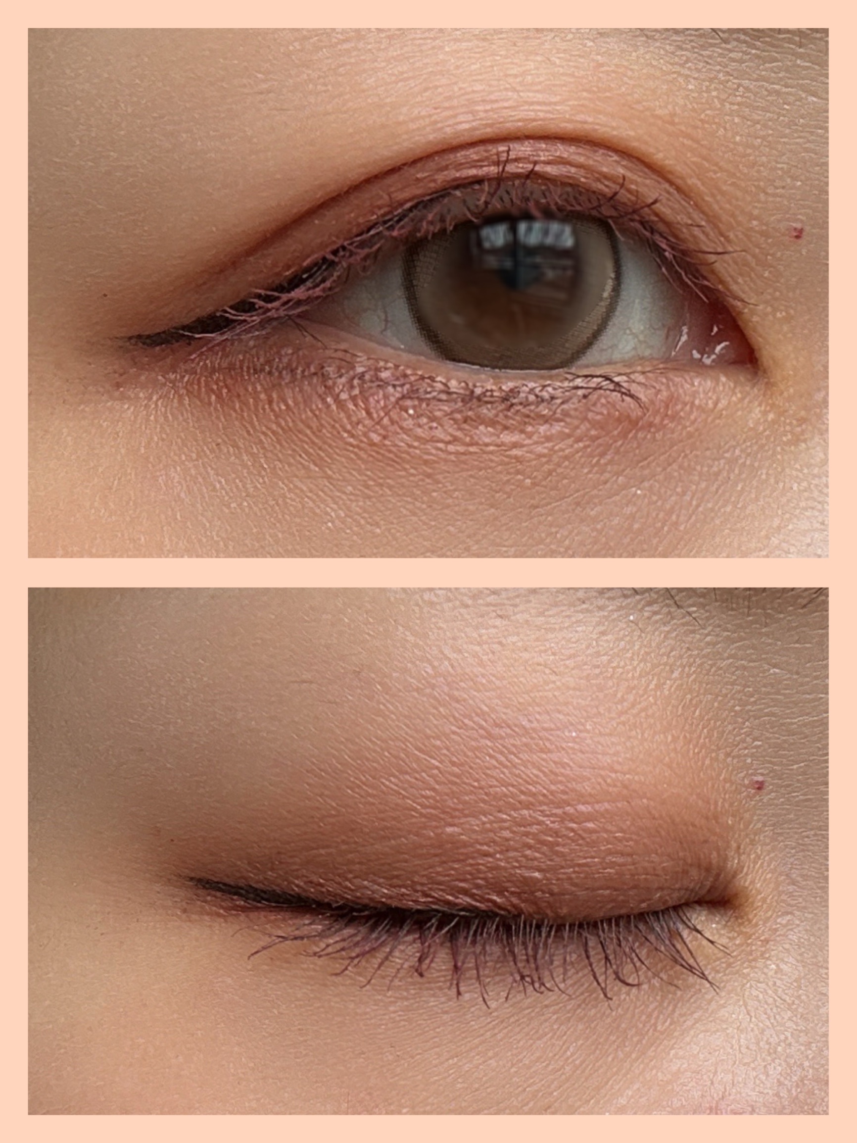 01のマンダリンゴールドはとても抜け感のある淡めの色✨ 私の目には少し物足りなくなっちゃうけど目がはっきりしている方はめちゃめちゃ可愛いと思う!! 03のモカブラウンは手に描いた時におおーーっ!となった絶妙な赤みブラウン。 パールタイプで写真じゃわかりづらいけどツヤっとしてるよ💓 この色が本当に本当に可愛くて🥺✨✨ラインひいて可愛いなぁ…と写真撮ったらマスカラ忘れてた😂 04のオリーブブラウン🫒これはラメタイプ。これは正にオリーブ!って色✨目に描くと深みの中にほんの少し抜け感?が出るようなオシャレ色✨