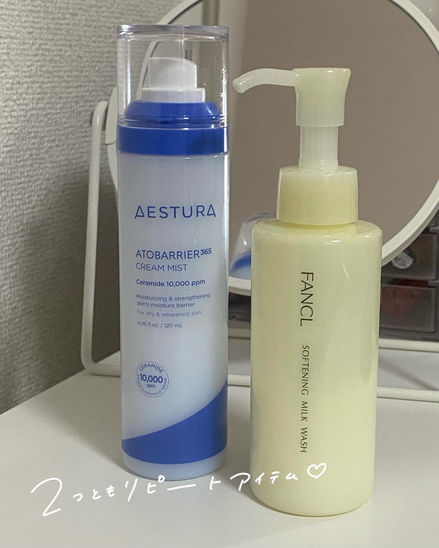 以前AESTURAのアトバリア365クリームを使用して良かったので今回お得なセットが出て嬉しい🥹🤍 ずっと気になっていたアトバリア365クリームミストも120mlの原品でたっぷり🫧 おまけが沢山🎁 2袋も入っていて豪華で、使ってみたかった物や初めて知った物もあって楽しみ😘