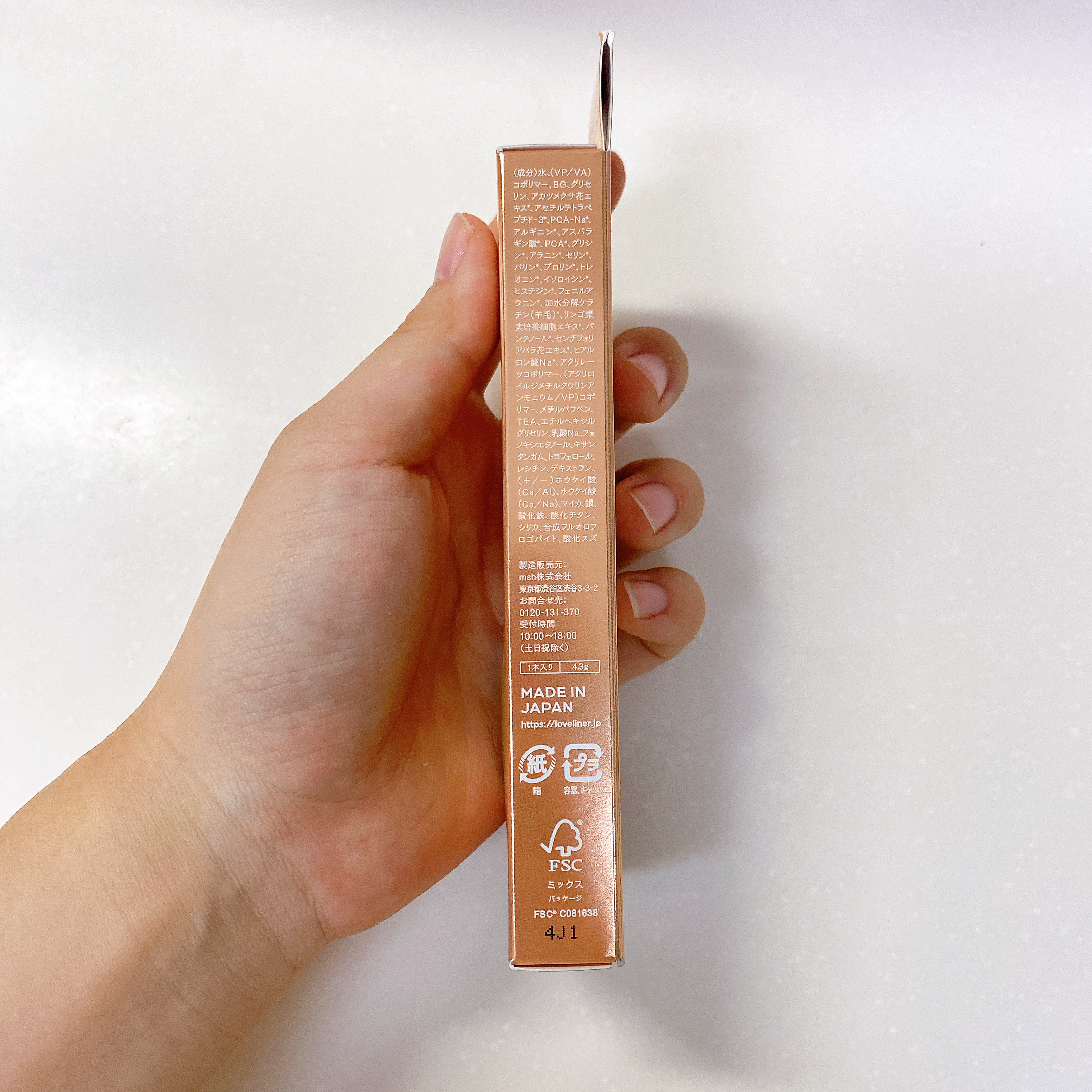 - <ピンキースノウ> 水、(VP/VA)コポリマー、BG、グリセリン、アカツメクサ花エキス、アセチルテトラペプチド-3、PCA-Na、アルギニン、アスパラギン酸、PCA、グリシン、アラニン、セリン、バリン、プロリン、トレオニン、イソロイシン、ヒスチジン、フェニルアラニン、加水分解ケラチン(羊毛)、リンゴ果実培養細胞エキス、パンテノール、センチフォリアバラ花エキス、ヒアルロン酸Na、アクリレーツコポリマー、(アクリロイルジメチルタウリンアンモニウム/VP)コポリマー、メチルパラベン、TEA、エチルヘキシルグリセリン、乳酸Na、フェノキシエタノール、キサンタンガム、トコフェロール、レシチン、デキストラン、(+/-)ホウケイ酸(Ca/Al)、ホウケイ酸(Ca/Na)、マイカ、銀、酸化鉄、酸化チタン、シリカ、合成フルオロフロゴパイト、酸化スズ <フローズンヌード> 水、(VP/VA)コポリマー、BG、グリセリン、アカツメクサ花エキス、アセチルテトラペプチド-3、PCA-Na、アルギニン、アスパラギン酸、PCA、グリシン、アラニン、セリン、バリン、プロリン、トレオニン、イソロイシン、ヒスチジン、フェニルアラニン、加水分解ケラチン(羊毛)、リンゴ果実培養細胞エキス、パンテノール、センチフォリアバラ花エキス、ヒアルロン酸Na、アクリレーツコポリマー、(アクリロイルジメチルタウリンアンモニウム/VP)コポリマー、メチルパラベン、TEA、エチルヘキシルグリセリン、乳酸Na、フェノキシエタノール、キサンタンガム、トコフェロール、レシチン、デキストラン、(+/-)ホウケイ酸(Ca/Al)、ホウケイ酸(Ca/Na)、マイカ、銀、酸化鉄、酸化チタン、シリカ、合成フルオロフロゴパイト、酸化スズ