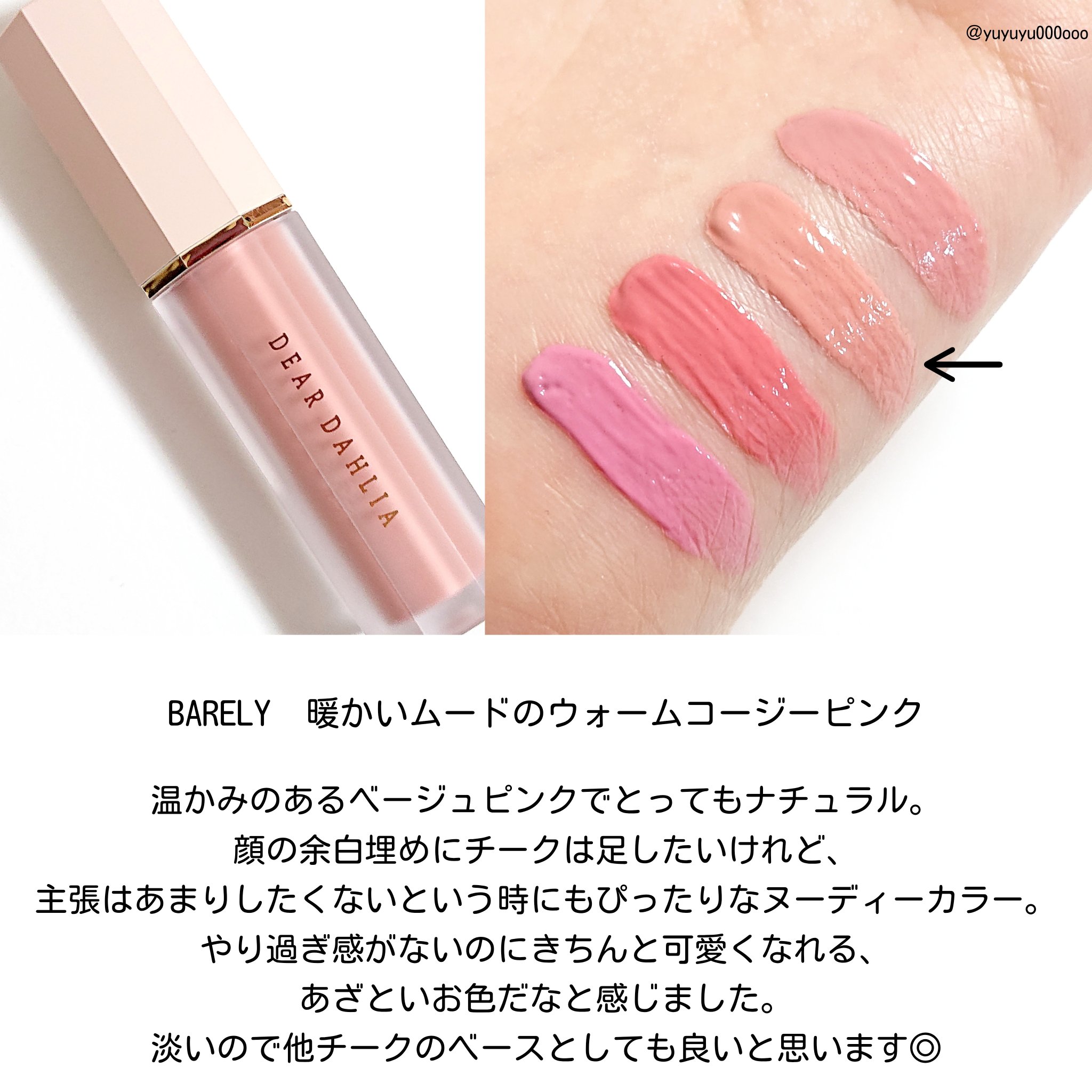 ディアダリアさまからいただきました。◎DEARDAHLIAペタルドロップリキッドブラッシャーBARELY(ベアリー)/SOFTIE(ソフティー)ウォータリーなリキッドテクスチャーで重ねる度に花びらが染まったかのような血色感ある明るいカラーを演...