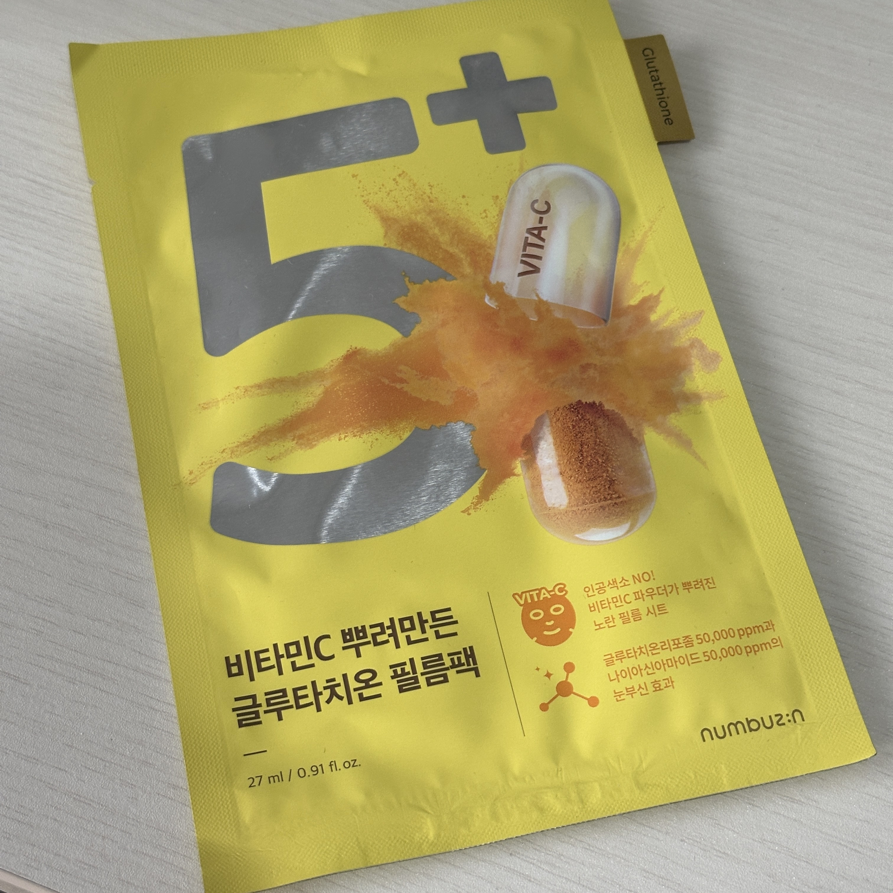 🏷️ナンバーズインNo.5白玉グルタチオンCふりかけマスク4枚入り韓国美容オタクさんおいでおいで〜☺️✨美白•くすみ•トーンアップ目指したい人必見パック👸ものすごく黄色くて最初びっくりしたけど効果抜群‼︎最高☺️💗💗使用し続けてくうちにトーン...