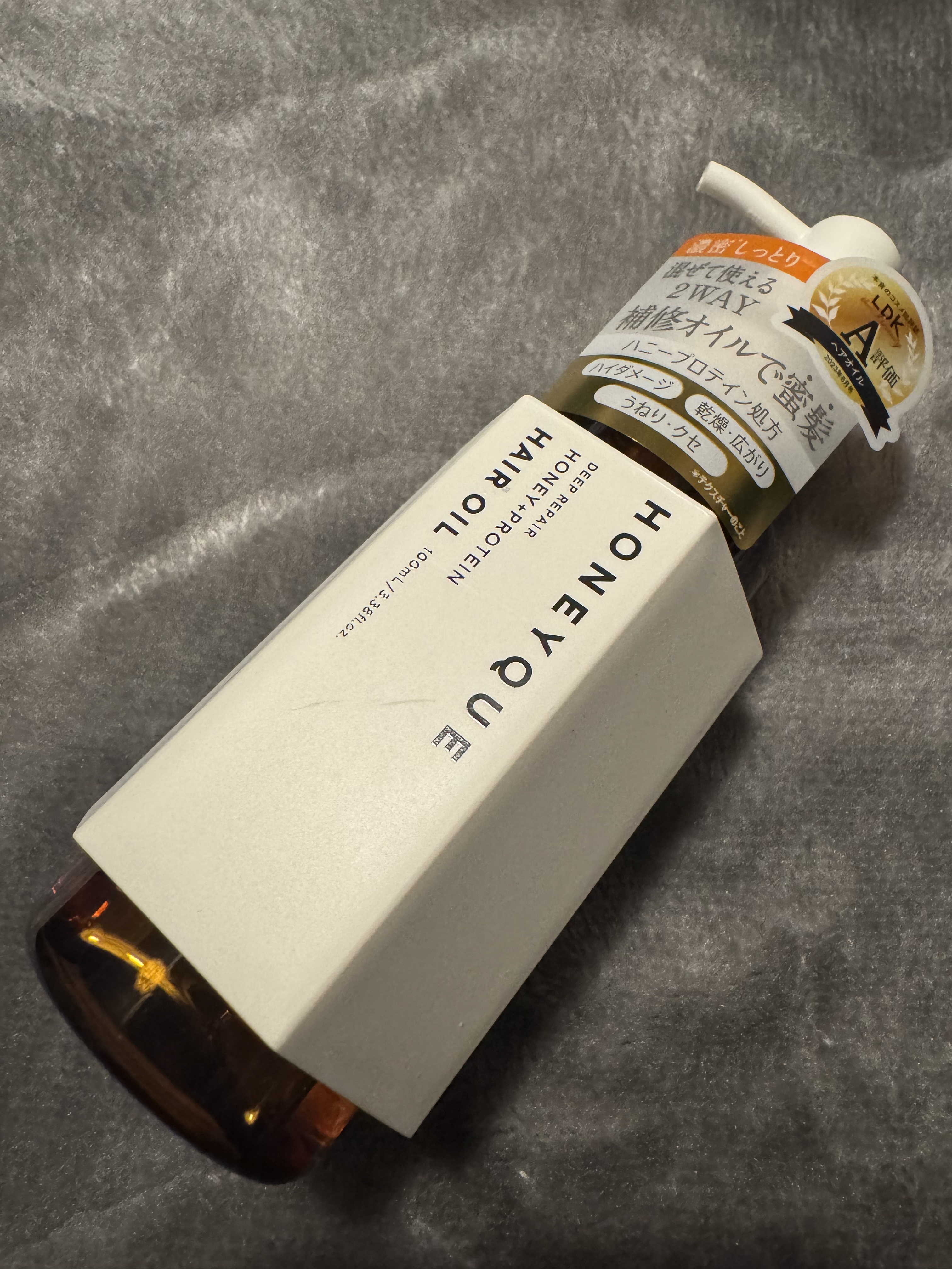 ハニークディープリペアカスタムヘアオイルエクストラモイストボトルタイプ100ml毛先ブリーチ5回、縮毛矯正、黒染め等数回ダメージ毛、うねり、枝毛、乾燥毛ドライヤー後、毛先中心に使用香りは甘くて、結構長時間持続する🍯ハニークのシャンプー、トリー...