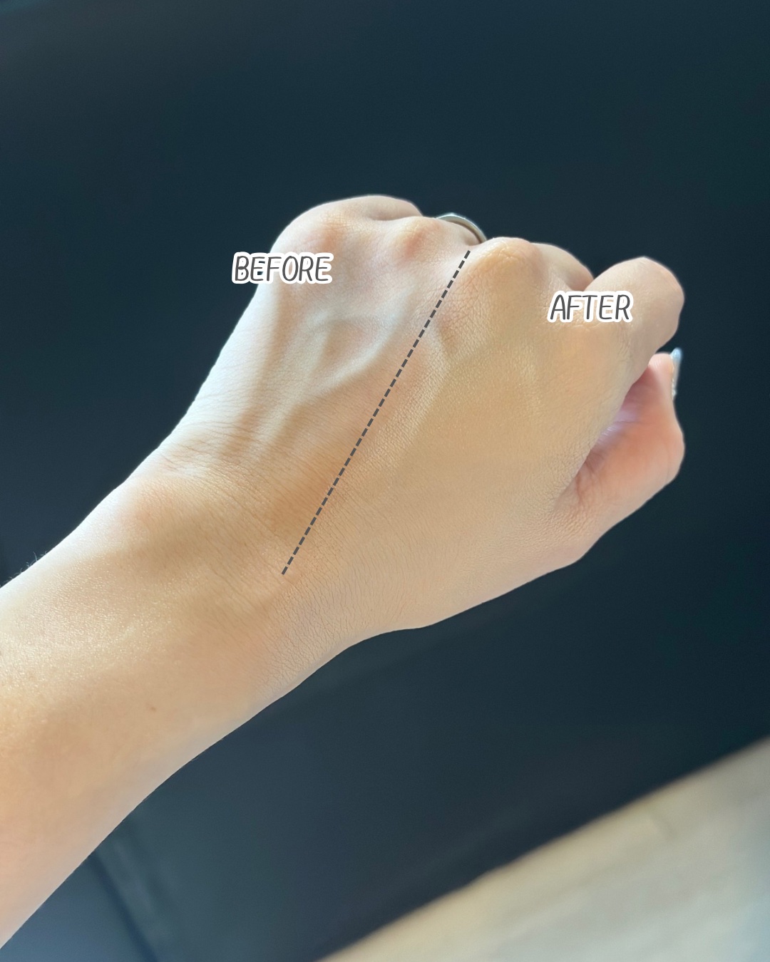 - <02 NUDE LIGHT(23号)> 水、酸化チタン、シクロペンタシロキサン、メチルトリメチコン、プロパンジオール、エチルヘキシルメトキシシンナメート、ポリメチルメタクリレート、ブチルオクチルサリチル酸、カプリリルメチコン、ラウリルPEG-8ジメチコン、トリメチルシロキシケイ酸、シクロヘキサシロキサン、ナイアシンアミド、ナイロン-12、PEG-10ジメチコン、HDI/トリメチロールヘキシルラクトンクロスポリマー、酸化鉄(CI 77492)、塩化ナトリウム、ブチレングリコール、ジステアジモニウムヘクトライト、水酸化アルミニウム、セチルPEG/PPG-10/1ジメチコン、スベリヒユエキス、ステアリン酸、ジメチコン、パンテノール、トリエトキシカプリリルシラン、酸化鉄(CI 77491)、安息香酸ナトリウム、ジメチコン/ビニルジメチコンクロスポリマー、酸化鉄(CI 77499)、ソルビン酸カリウム、香料、トコフェリルアセテート、エチルヘキシルグリセリン、トリソジウムエチレンジアミンジコハク酸、アデノシン、シリカ、1,2-ヘキサンジオール、ヒアルロン酸、加水分解ヒアルロン酸、ヒアルロン酸ナトリウム、チャ葉水、ティーツリー葉エキス、ペンタエリスリチルテトラ-ジ-t-ブチルヒドロキシヒドロケイヒ酸エステル、トコフェロール