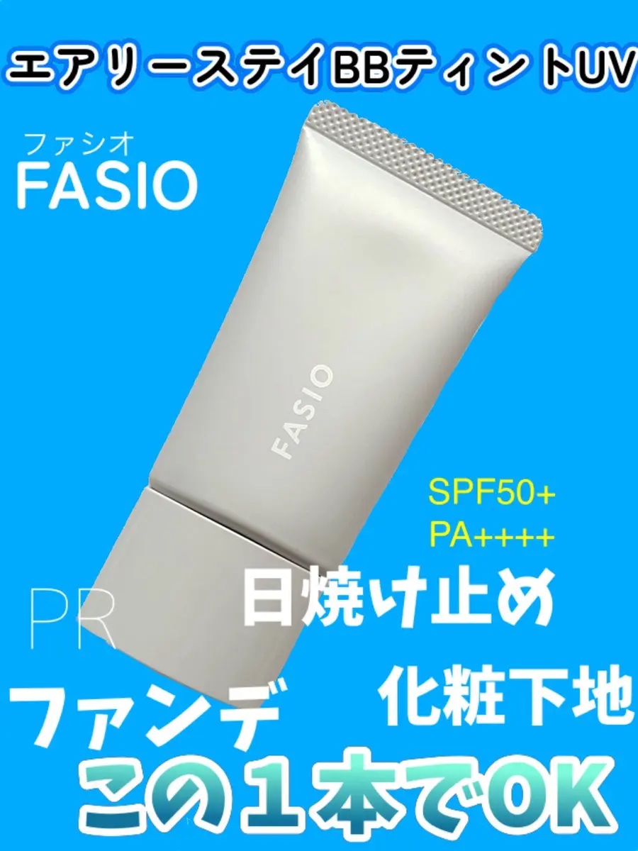 ファシオさまからいただきました♡🏷️FASIOエアリーステイBBティントUV02ライトベージュ日焼け止め・化粧下地・ファンデーションの効果がこれ1本に!カバー力もしっかりあって忙しい朝にぴったり♡手で塗るより、スポンジで馴染ませると◎#ガチモ...