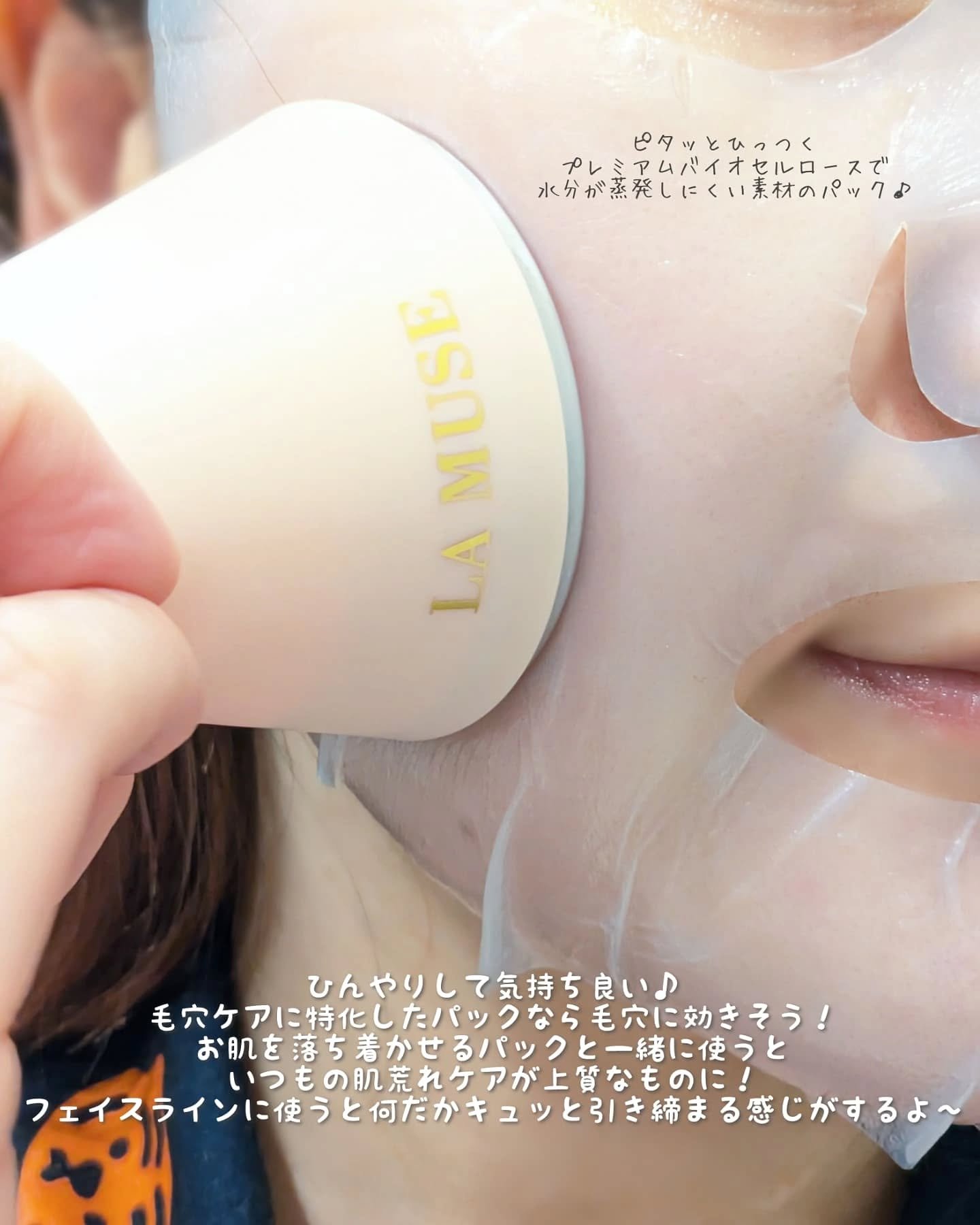 ラミューズ🤍スキンリペアシグネチャーマスク@lamuse.japanマスクは薄くて密着力すごい!!!多分走ってもずれないと思う😆プレミアムクリスタルバイオセルロース素材によりシートマスク10倍以上の水分特続力でパックをしてる間絶えず水分を供給...