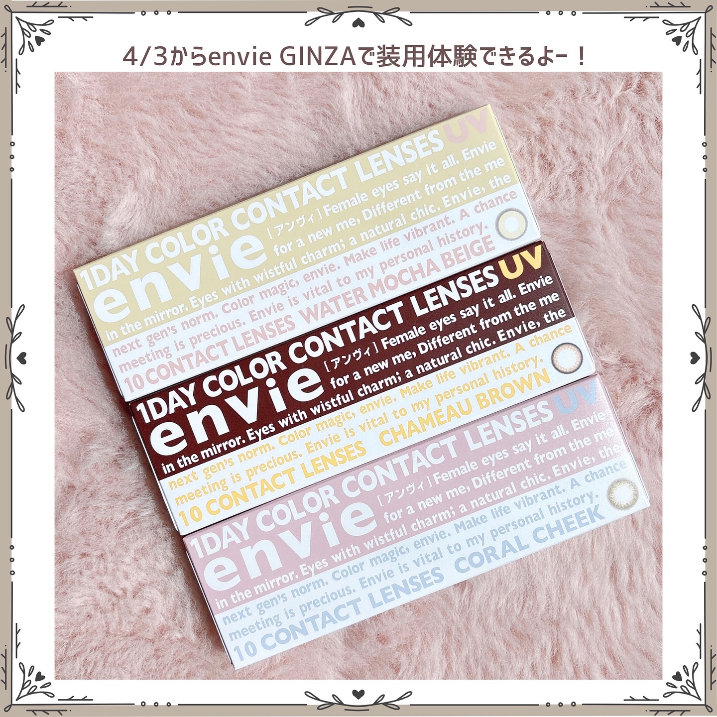 envieのナチュ盛りカラコンが可愛い💓大人でも使いやすいナチュラル系でうるっとした瞳にしてくれる✨3種類とも30代の私でも使いやすかった☺️✨4/3(木)よりenvieGINZA(アンヴィギンザ)が東急プラザ銀座B1階にOPEN‼️ウォータ...