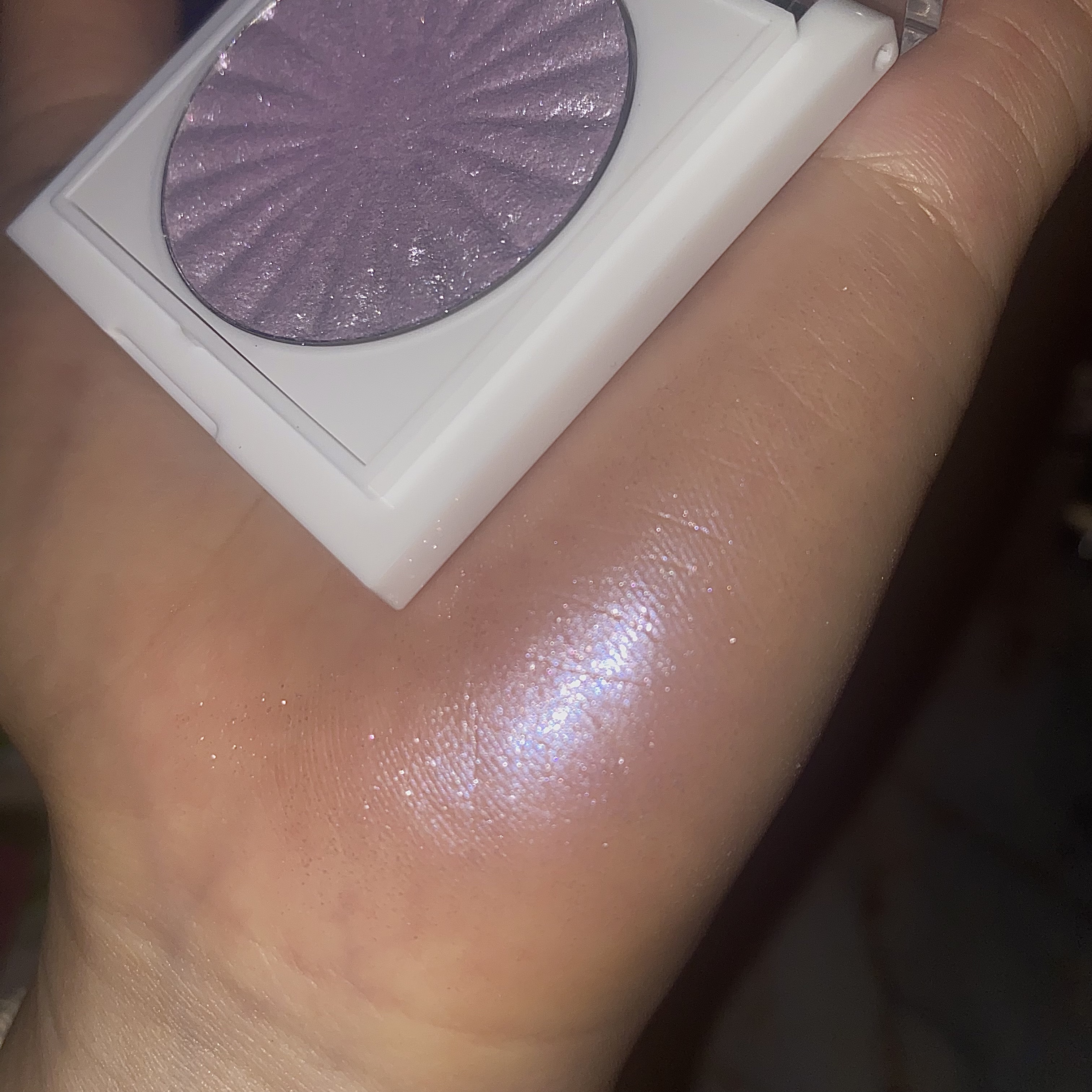 チークの方はピンクの中にゴールドとブルー、ラベンダーなど色々なラメが散りばめられていてとっても可愛いです🎀 ハイライトの方はペールラベンダーのような色味でペカーっと光ってくれるタイプのハイライトです💜🤍 どっちもとってもかわいい໒꒰՞ ܸ. .ܸ՞꒱а⋆⑅˚₊