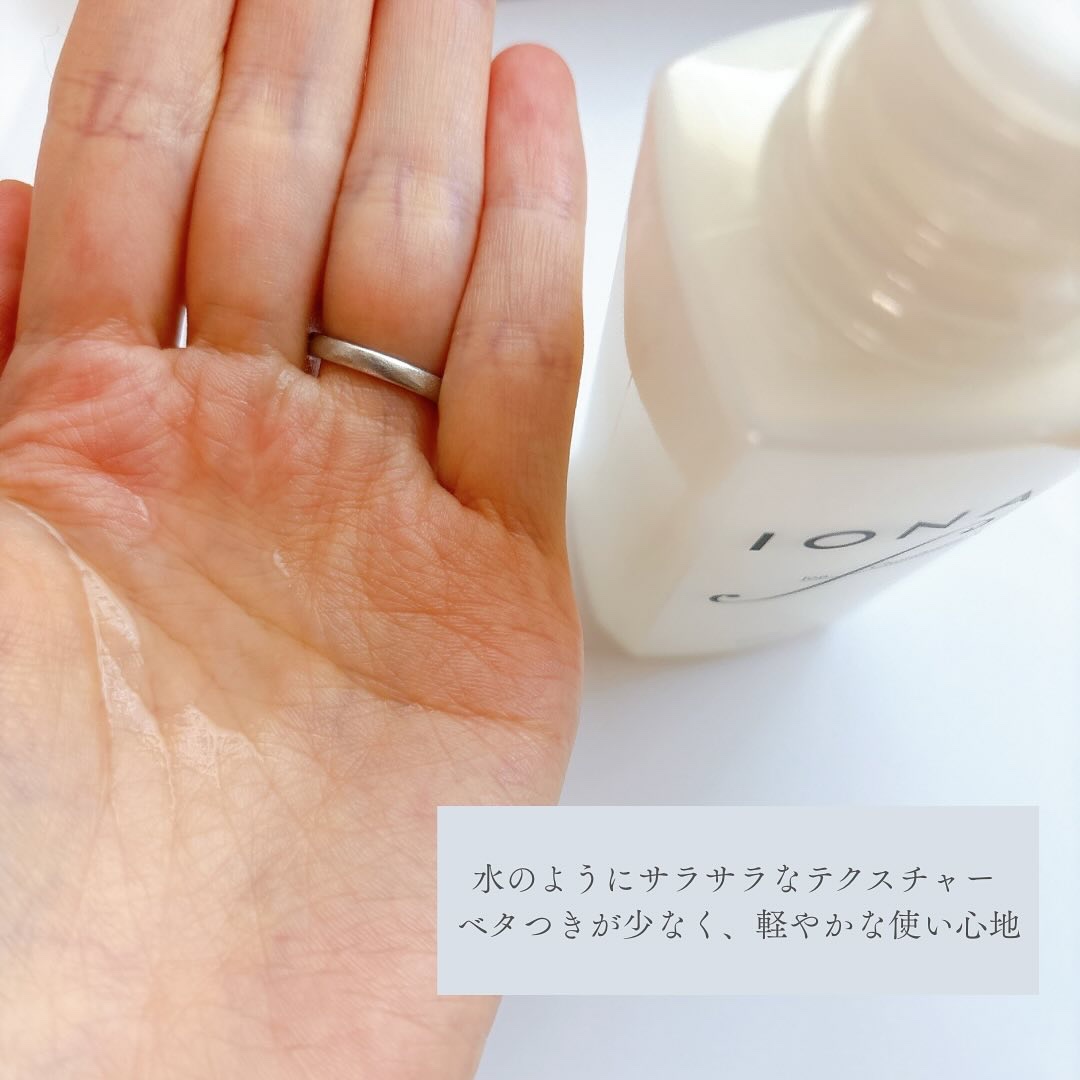 少しとろみのあるテクスチャーの化粧水です しっとり感がありつつも嫌なベタつきではなく、潤いとみずみずしさも感じられる使用感です✨ こちらの化粧水は従来のイオナエフローションの2倍の高純度のコンドロイチンを配合🫨 【コンドロイチン※1】はお肌の保水成分であり、ハリ・弾力感を支えてくれてたっぷりの潤いを長時間キープしてくれます 乾燥が気になるこの時期も潤いを長時間感じられて突っ張り感もなく使えています☺︎