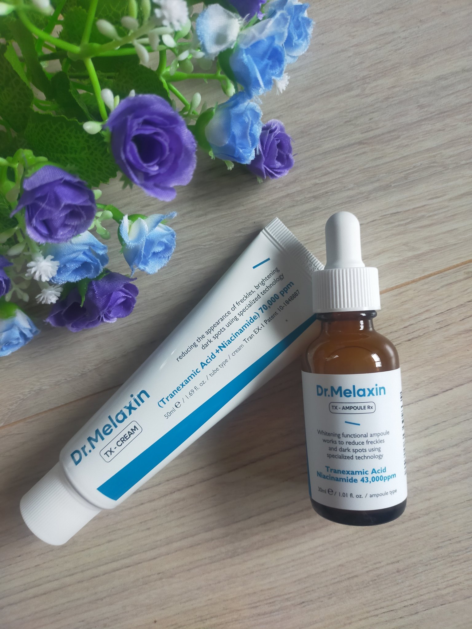 トラネキサム酸配合♪̊̈♪̆̈ Dr.Melaxin(ドクターメラクチン) TXアンプルRX+TXクリーム✨️ リポソーム化したナノトラネキサム酸でより浸透しやすくなっているのだとか🫶 ベトつかない さらっとしたテクスチャーで使いやすいです😌