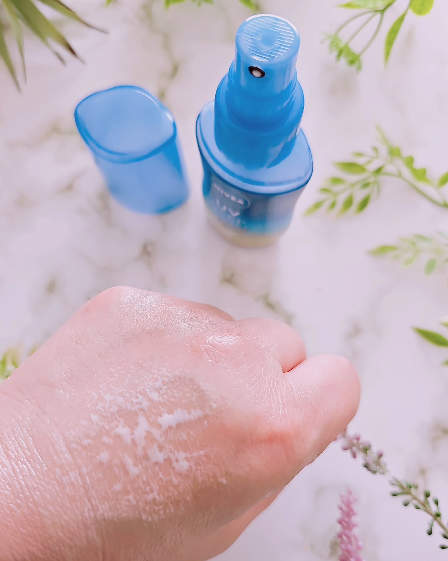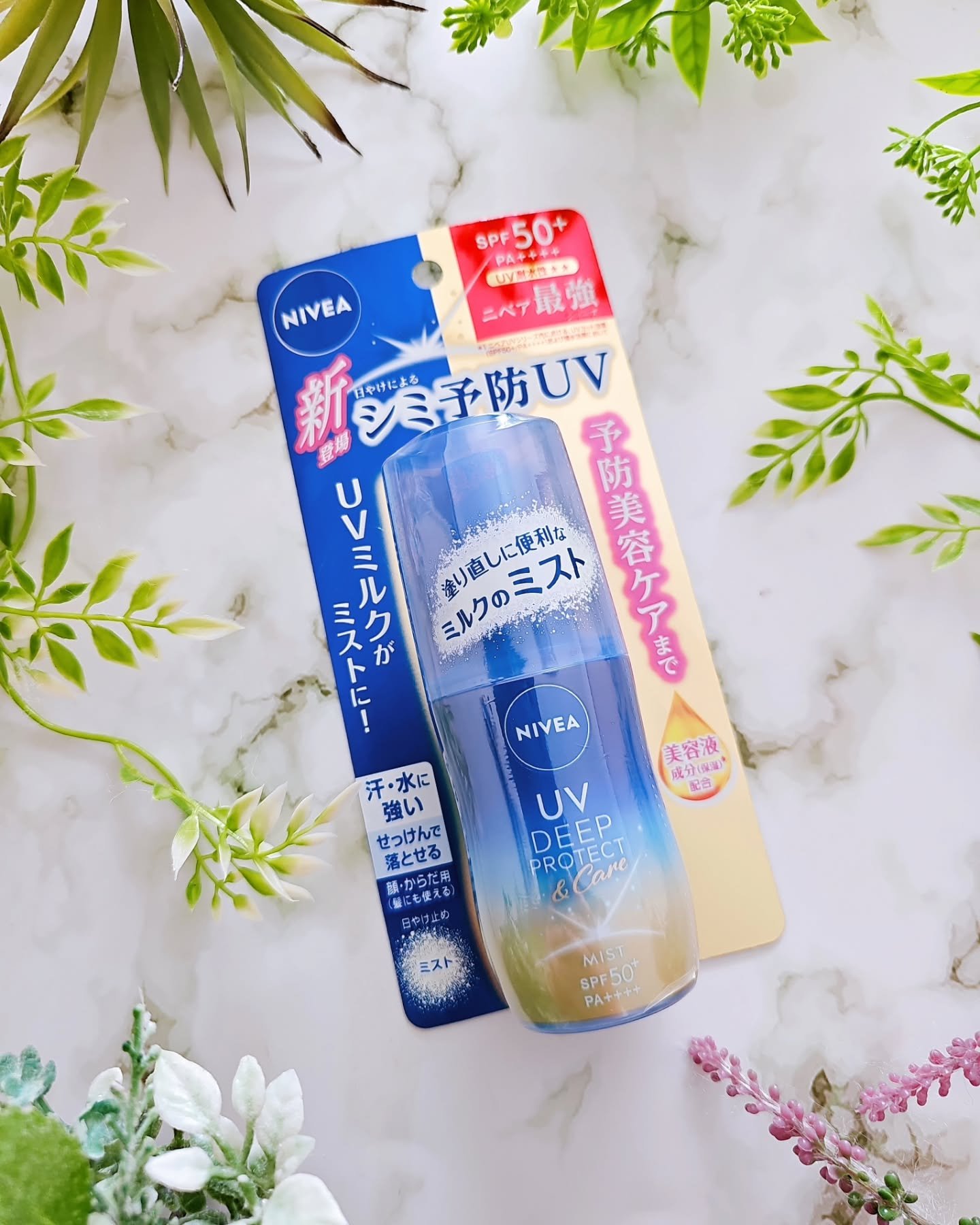 ニベア最強のUVカット効果(SPF50+/PA++++) と撥水効果 乳白色のUVミルクが瞬時にミスト化🤍🤍🤍 シュッとすれば、細かなミストがふわっと肌にのり、ツヤをまとってぴたっと密着。 ノンガスのミストタイプで持ち運びやすく、外出時、首・手の甲・腕回り・足首・髪といった大きな部分から細かな部分まで、シュッとスプレーするだけなので、塗り直しが楽になりました😎✨
