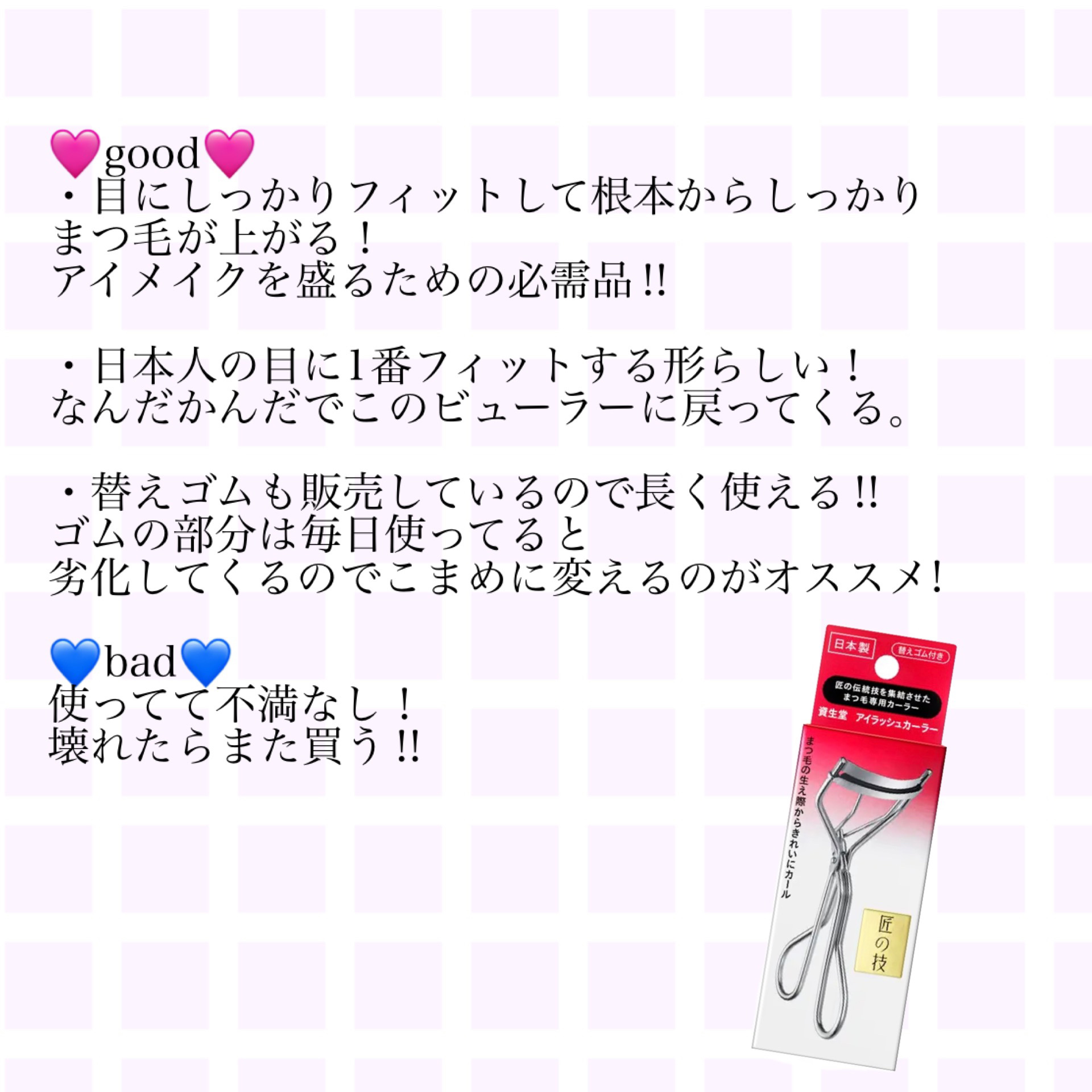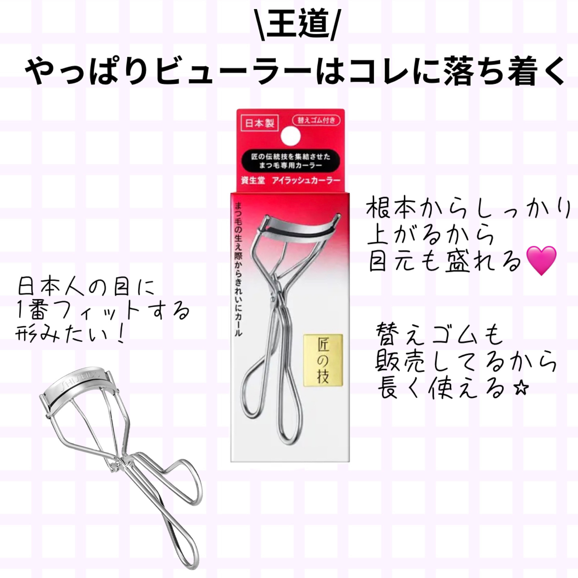 ビューラーのゴムの替え時がよくわからないのですが、最近まつ毛の上がりが悪い気がして買ってみました。【資生堂アイラッシュカーラー替えゴム】近所のドラストで税込165円でした。え、ビューラーって型番なかったけ?私の持ってるのは何てやつだ?...