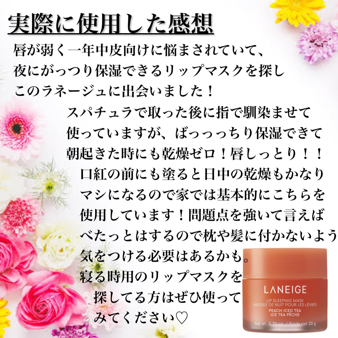 リップケアに欠かせないラネージュのスリーピングマスク🤍 寝る前にたっぷり塗って翌朝、軽くティッシュオフして使います☝️ ほんとに塗るとぷるぷるになるからこれからも使い続けたい💓 コスパも良くてこれからの季節、唇が乾燥しやすいからとても助かってます🤍