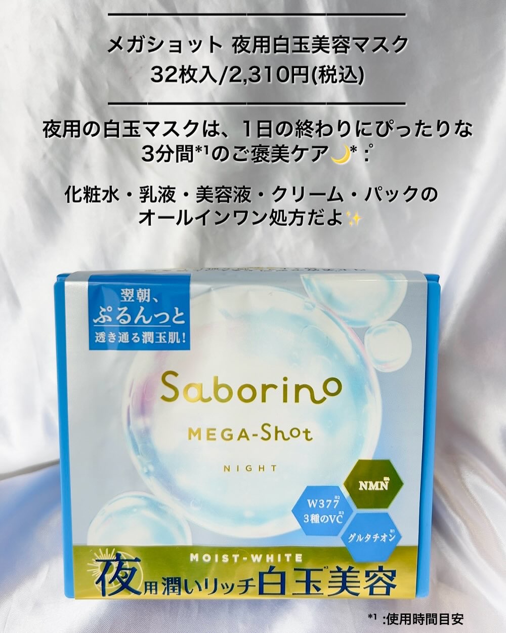サボリーノ サボリーノ メガショット 夜用白玉美容マスク | 2,310円 |