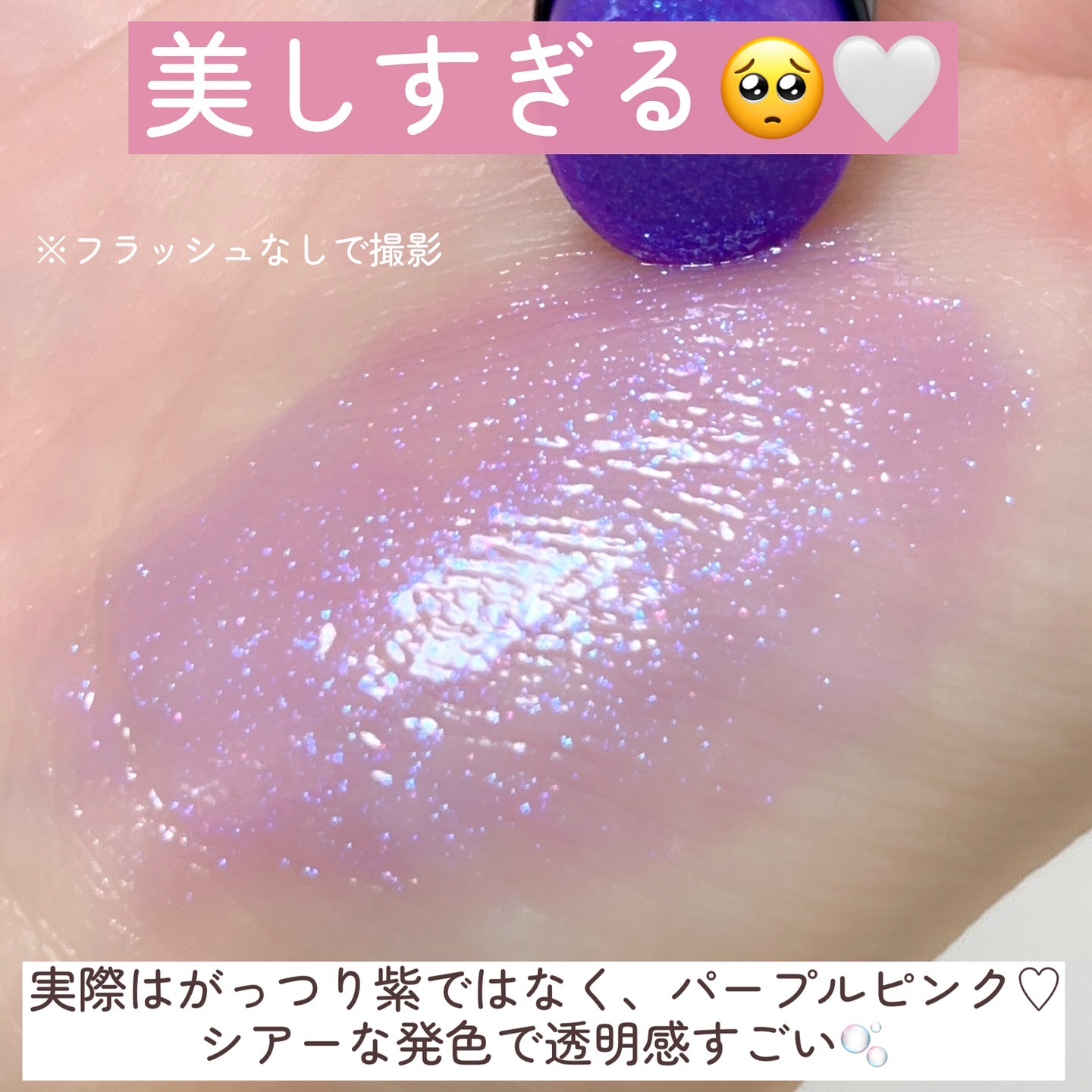 しっとりなめらかな粉質で、肌に光が溶け込む。 ツヤの美しさや発光具合は写真の通り。 ひと塗りで極上の艶を纏うことができます。 私が1番感動したのは 03 パールグロウ 水色やパープルをはじめとした細かいラメがぎっしり。 まるでダイヤモンドのような輝きでこれが最高💎 いざ肌に乗せると透明感たっぷりで白浮きしません。 今日アイシャドウとして使ってみたらまぶたが濡れたように艶めいて最高だった!! ラメ大好き芸人のみなさんは絶対チェックして欲しいです。 パケもしっかり可愛いです♡ 中身も見た目ももはや無敵。 これ、買わない理由ある??