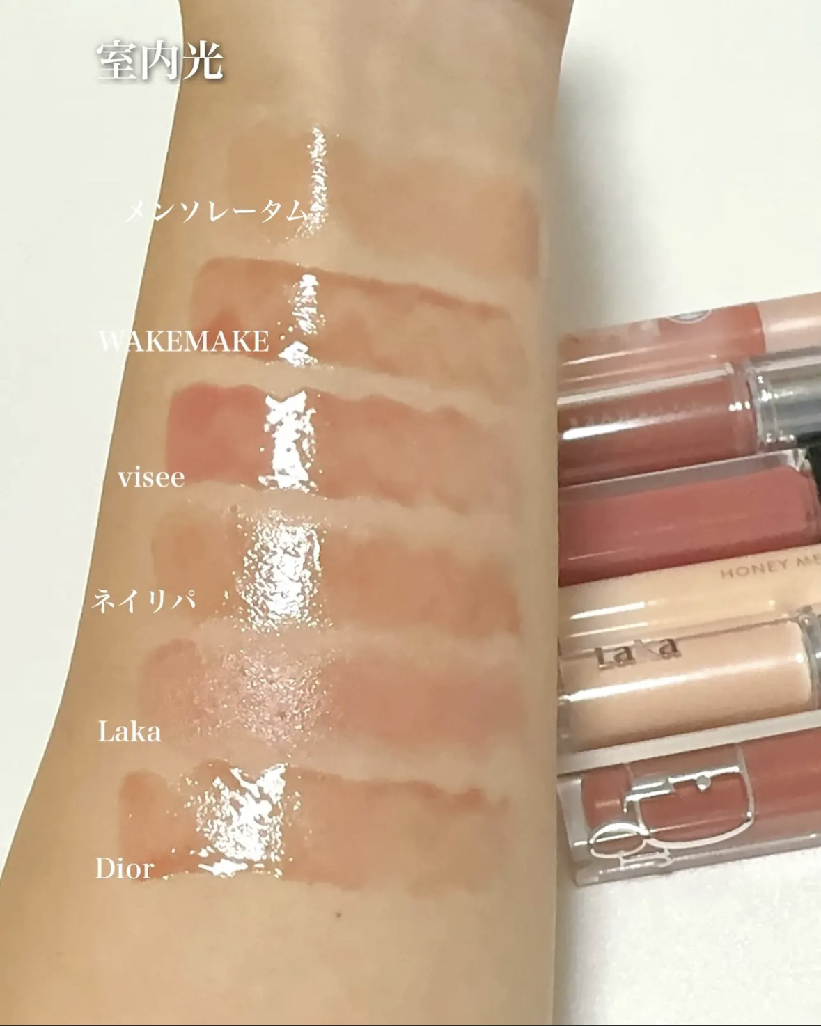ねっちょりボリューム感あるテクスチャーだけど、ベタつきなく使いやすい。 ティントじゃない普通のグロスだから色もちは良くない。 発色ナチュラルだからこれだけでもいいけど、他のリップと合わせても可愛い!!