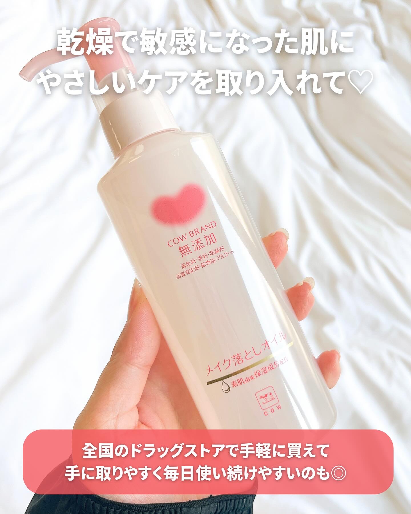 赤箱で有名な牛乳石鹸の会社から出ている「カウブランド無添加」のスキンケアシリーズカウブランド@mutenka_official無添加メイク落としオイルこれからの時期乾燥や夏の紫外線ダメージ、秋花粉などで敏感になった肌におすすめなクレンジン...