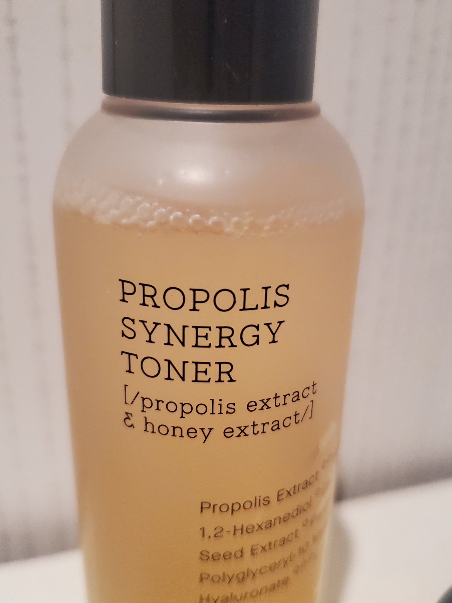プロポリスエキスがトナー・・72.6% アンプル・・83%だそうです。 香りはほぼないです。めっちゃ使いやすい。 トナーはどっちかというとシャバシャバ系のテクスチャー。 特に化粧水はストック買いしたいと思うほどに気に入った💞