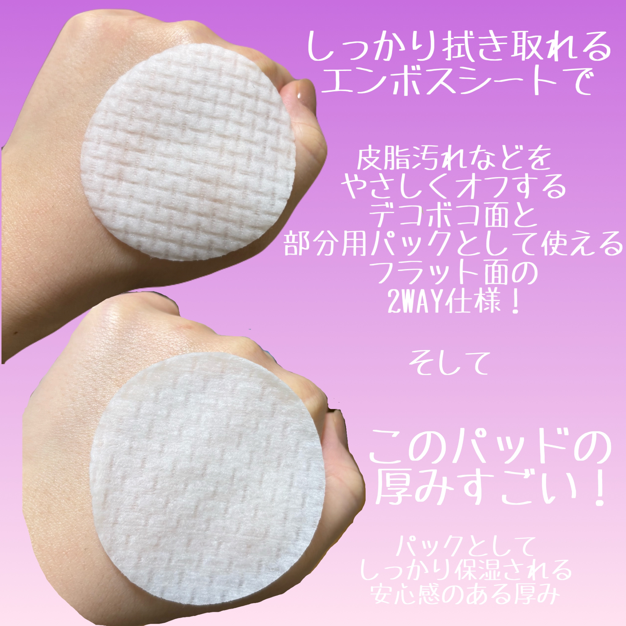 | パッド自体は柔らかく、美容液も多め。拭き取った後はしっかりとお肌が潤います♡ | 詳細を見る | ||