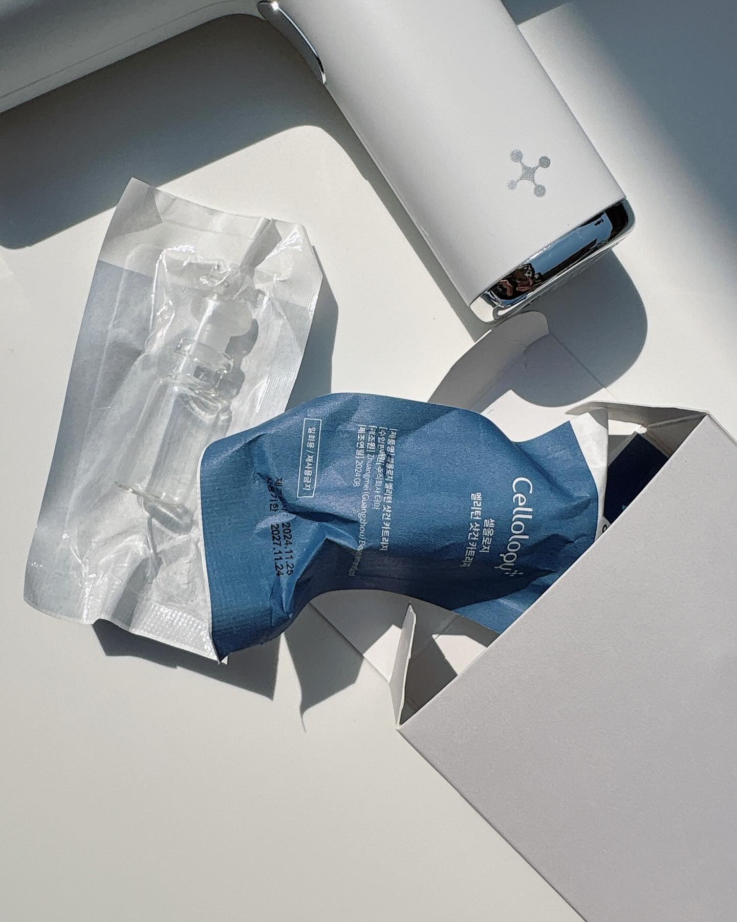 色素沈着が気になる箇所にLEDを照射してアプローチ🫶🏻💗 色素の深さごとにトーニングケアできるよ! スタンプみたいに優しく押して使用するんだけど、わたしは特に痛みを感じず使えたよ🙆♀️🫧 このショットガンとアンプル、2024年12月から韓国の皮膚科やドラッグストアで販売開始しているみたい👏🏻