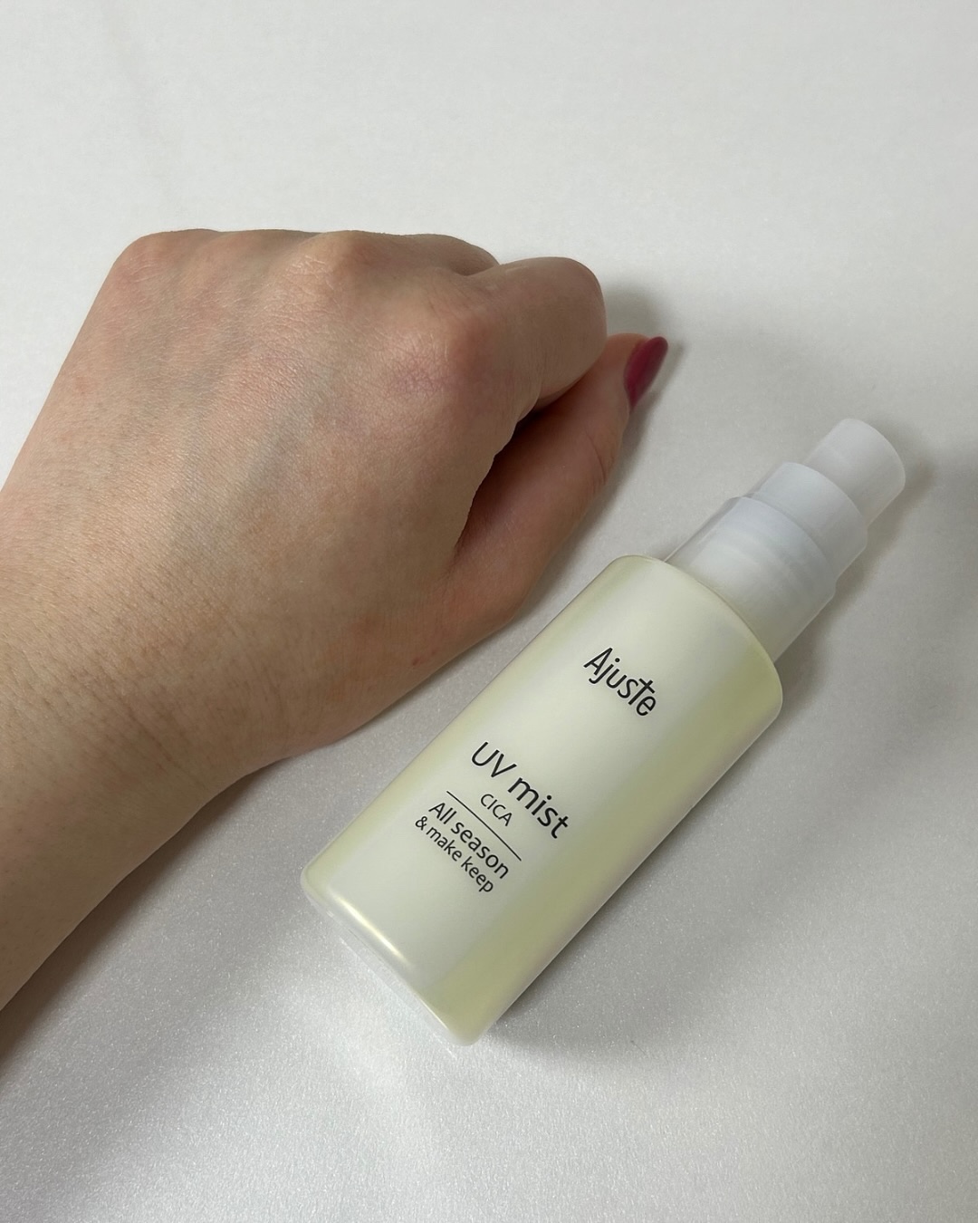 .メイクしたての仕上がり、ちょっとでも長持ちさせたい人へ♪【アジャステメイクキープUVミスト】はふんわりミストがメイクの上からピタッと密着して、いつものメイクをキレイにキープしてくれるアイテム!SPF35/PA++だから、外に出る時の紫外線対...