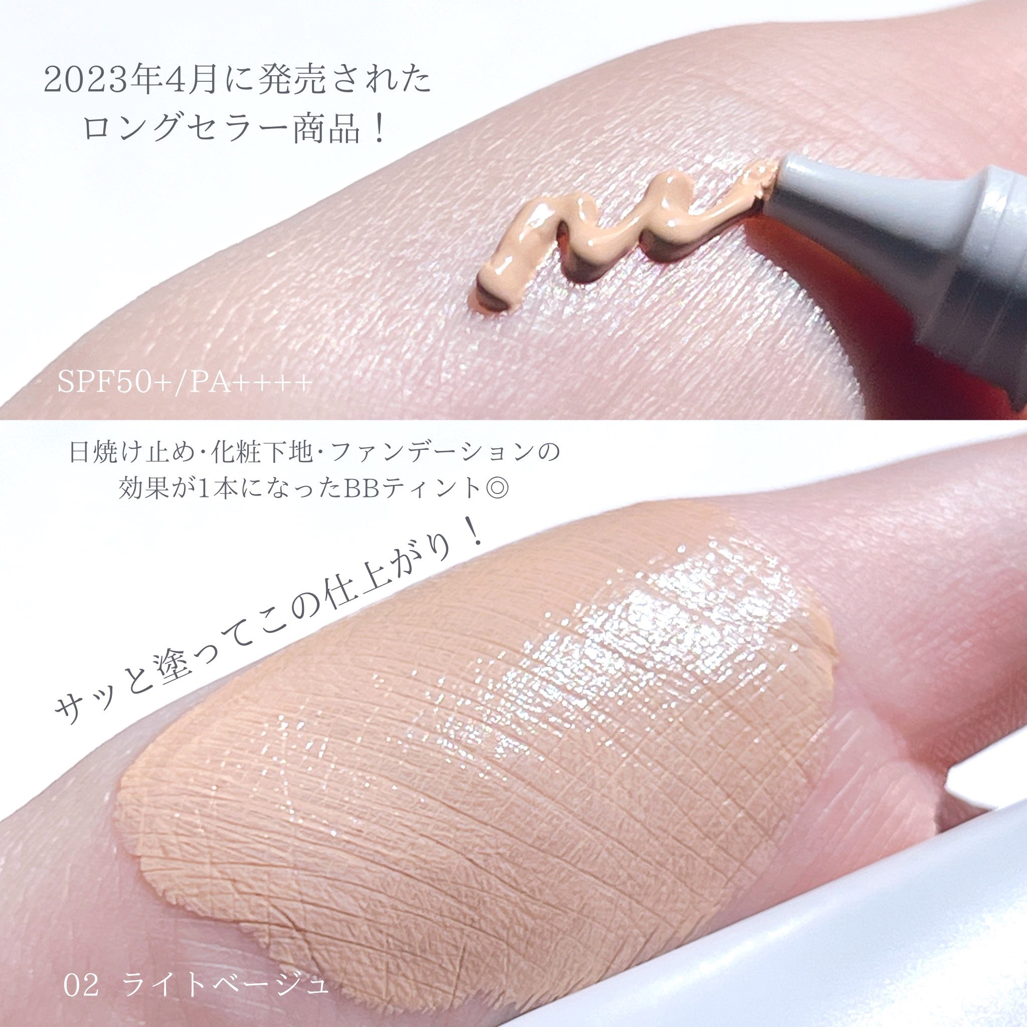 - ●SPF50+/PA++++ ● 日やけ止め・化粧下地・ファンデーションの効果が1本になったBBティントです。ラスティング効果に優れているため、明るい美肌が長時間持続します。 ● 厚塗り感・白浮き感なく、気になる肌悩みを自然にカバーします。 ● 肌への親和性が高いスキンペアリング成分配合。高い紫外線防止効果をもちながらも、肌への負担感や乾燥感の少ない、なめらかな使用感を叶えました。 ● 軽いタッチのオイルをバランスよく配合することで、軽やかなのび広がりと心地よいフィット感を実現しました。 ● 柔軟性の高いラスティングキープ成分と、肌への付着性に優れたタッチプルーフ成分を配合。化粧膜が肌にピタッと密着し、マスクへの色移りを防ぎます。 ● フェザーフィット成分配合。ふわっと軽やかにのび広がり、肌と一体化したようになじみます。 ● ウォータープルーフ&皮脂プルーフ。汗や皮脂によるテカリ・くずれを防ぎ、つけたての美しさが1日持続します。 ● 13時間化粧もちデータ取得。 ※当社調べ。効果には個人差があります。 ● 5種のオーガニック植物抽出成分配合。やさしい使い心地にこだわった設計です。 ● 鉱物油フリー / パラベンフリー / 無香料 ● アレルギーテスト済み / パッチテスト済み / ノンコメドジェニックテスト済み ※すべてのかたにアレルギーや皮膚刺激が起きない、コメド(ニキビのもと)ができないというわけではありません。