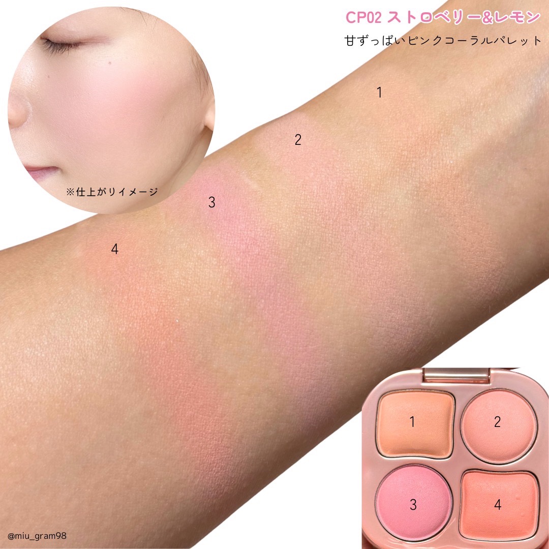 | チークランキング第145位 | 手のひらサイズで4色パレット 指塗りでもムラになりにくい ふんわりジェリー質感 | 詳細を見る | |
